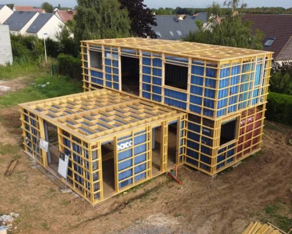 Construction en conteneurs maritimes : 4 conteneurs de 20 pieds sur pieux métalliques