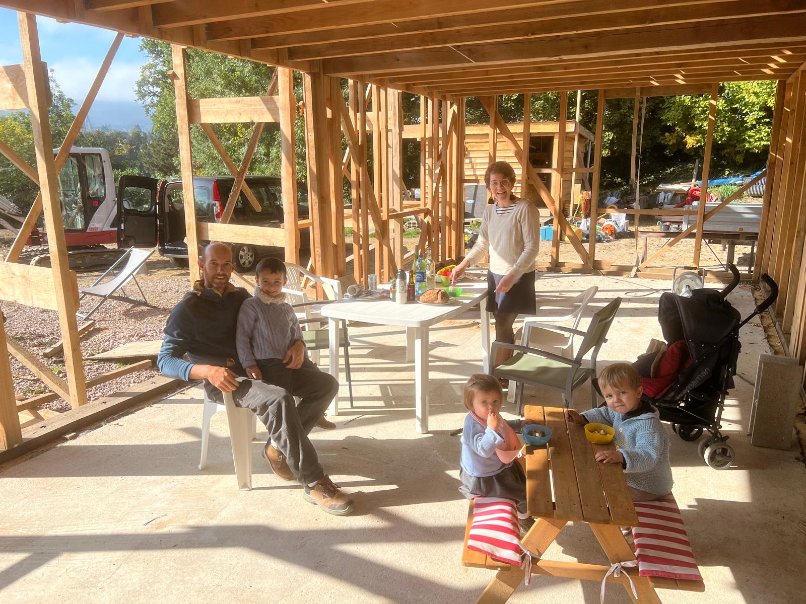 Je vous accueille pour un goûter au milieu de notre chantier d’autoconstruction ! Vous pourrez découvrir notre ossature peu commune et voir en avant-première notre chantier de remplissage en terre paille allégée.