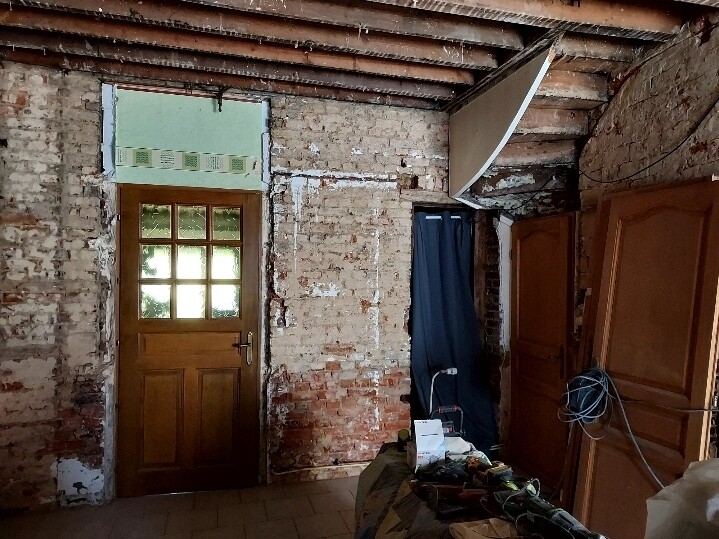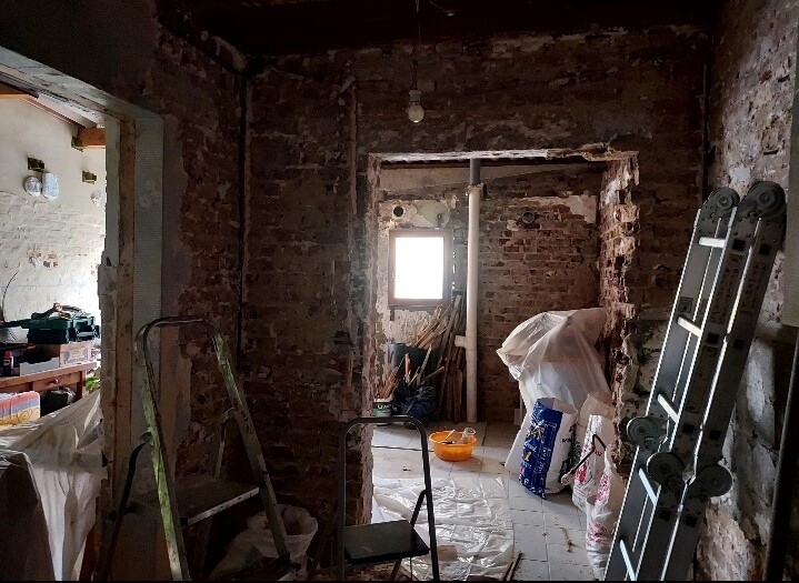 Je te ferai découvrir mon chantier : cette maison de brique mise à nu qui attend de se rhabiller. Nous pourrons aussi échanger sur les moyens que j’ai mis en place pour continuer à vivre dans la maison malgré les travaux.