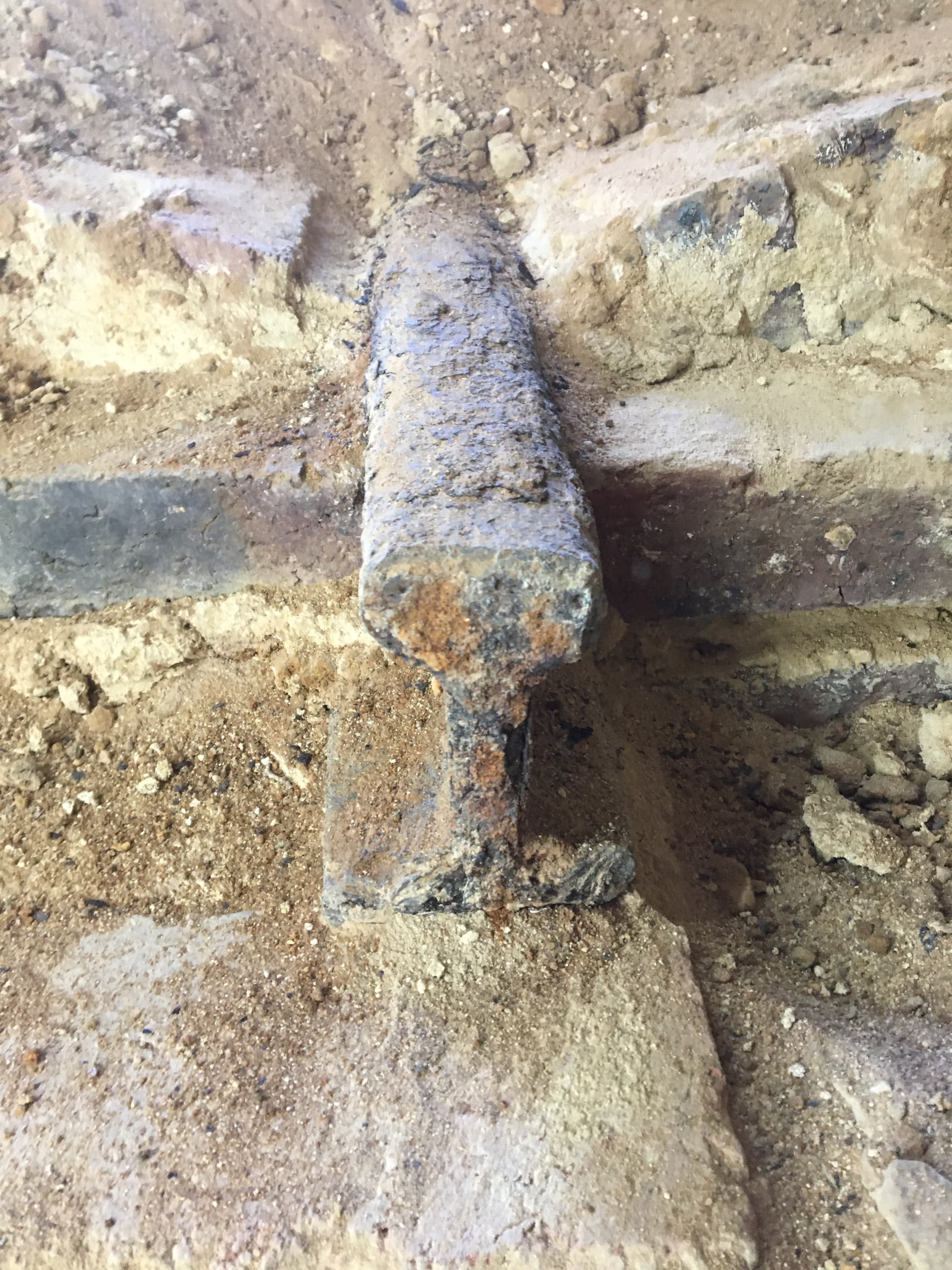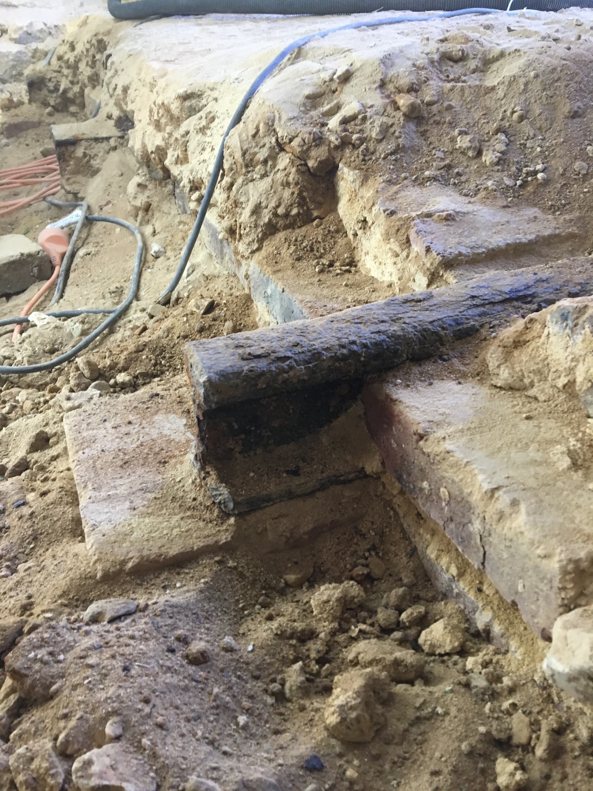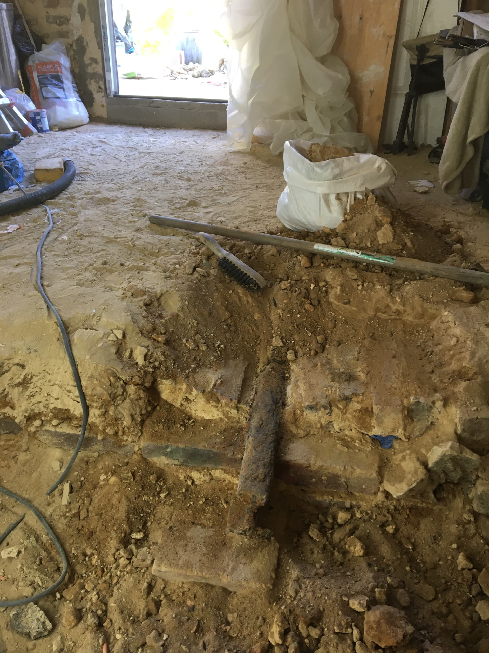 J’ai déblayé un peu sur un voutain et une poutrelle. Je vais retirer tout le sable pour mettre tout a nu et vérifier s’il n’y a pas de fissuration dans les voutains et traiter les IPN (brossage, poncage et antirouille).