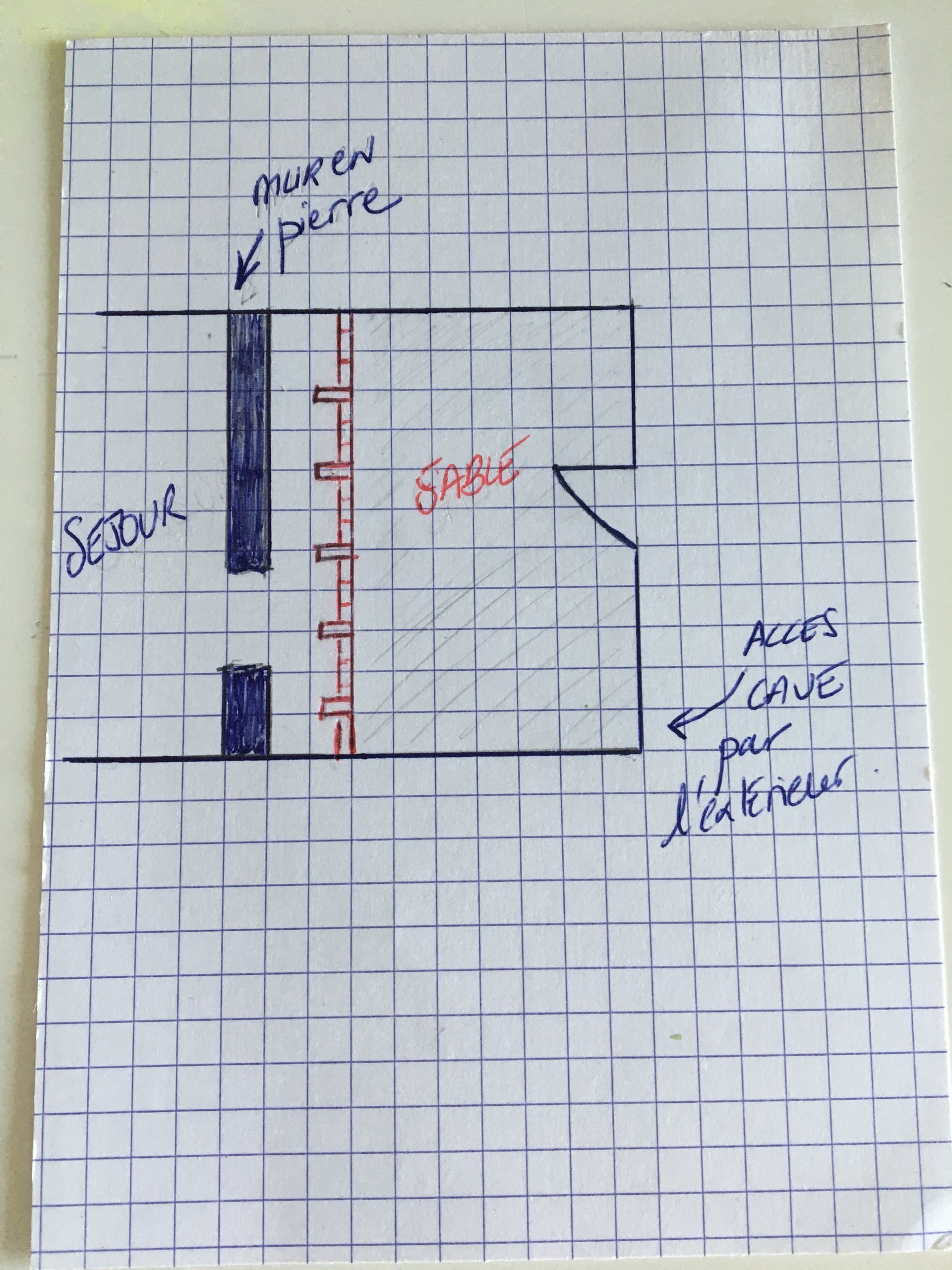 J’ai rajouté 2 photos de la cave vue du dessous et je vous ai fait un schéma vue du dessus pour la partie rez-de-chaussée.