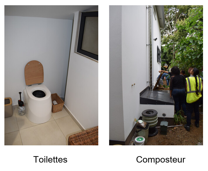 Nous avons prévu des chiottes sèches au rez-de-chaussée avec une décharche dans une grande cuve qui sera vidée par une trappe extérieure. Cette cuve sera semi-enterrée et la trappe extérieure est déjà prévue.