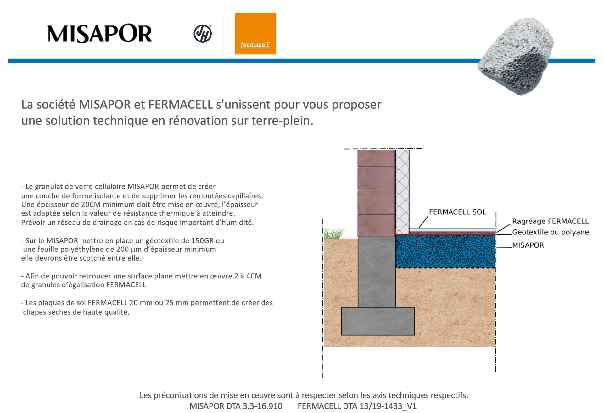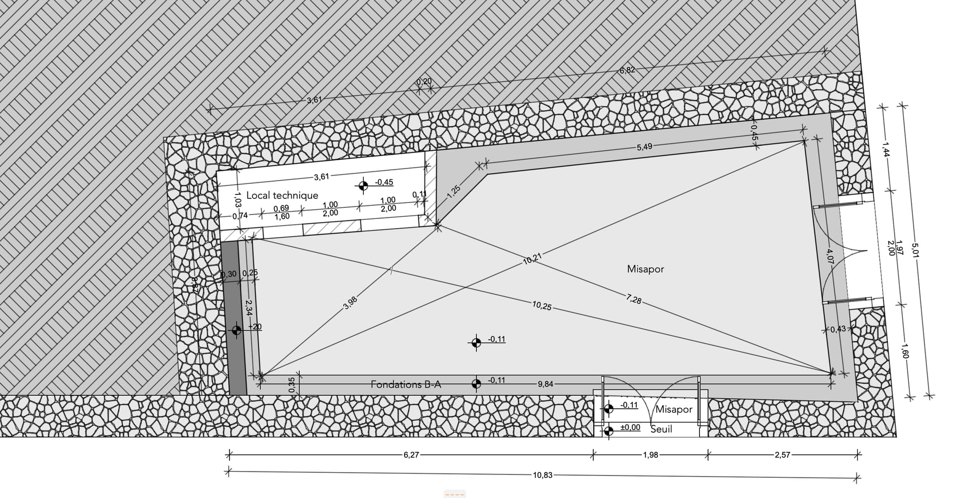 Contraints par la hauteur, il nous reste seulement 11 cm entre le niveau misapor et notre niveau 0 souhaité (le seuil de porte)…