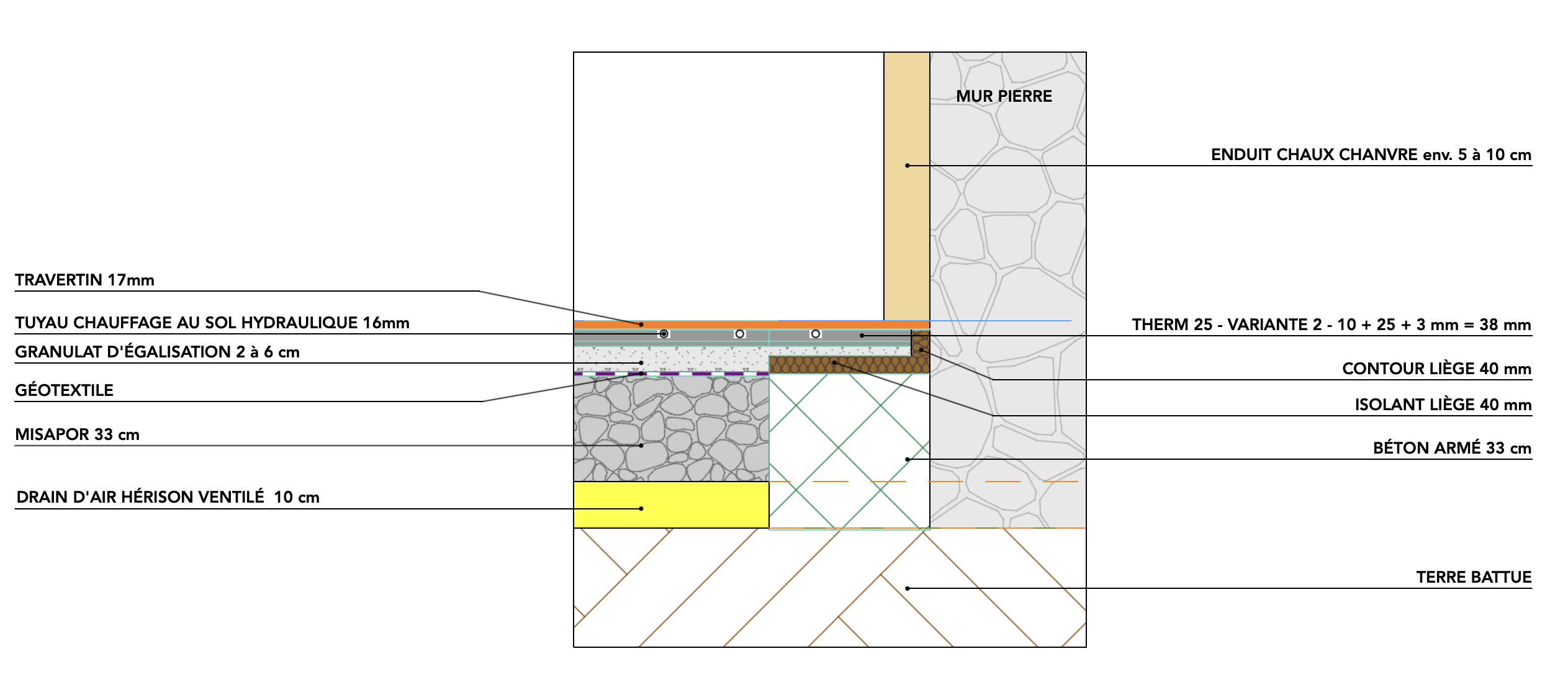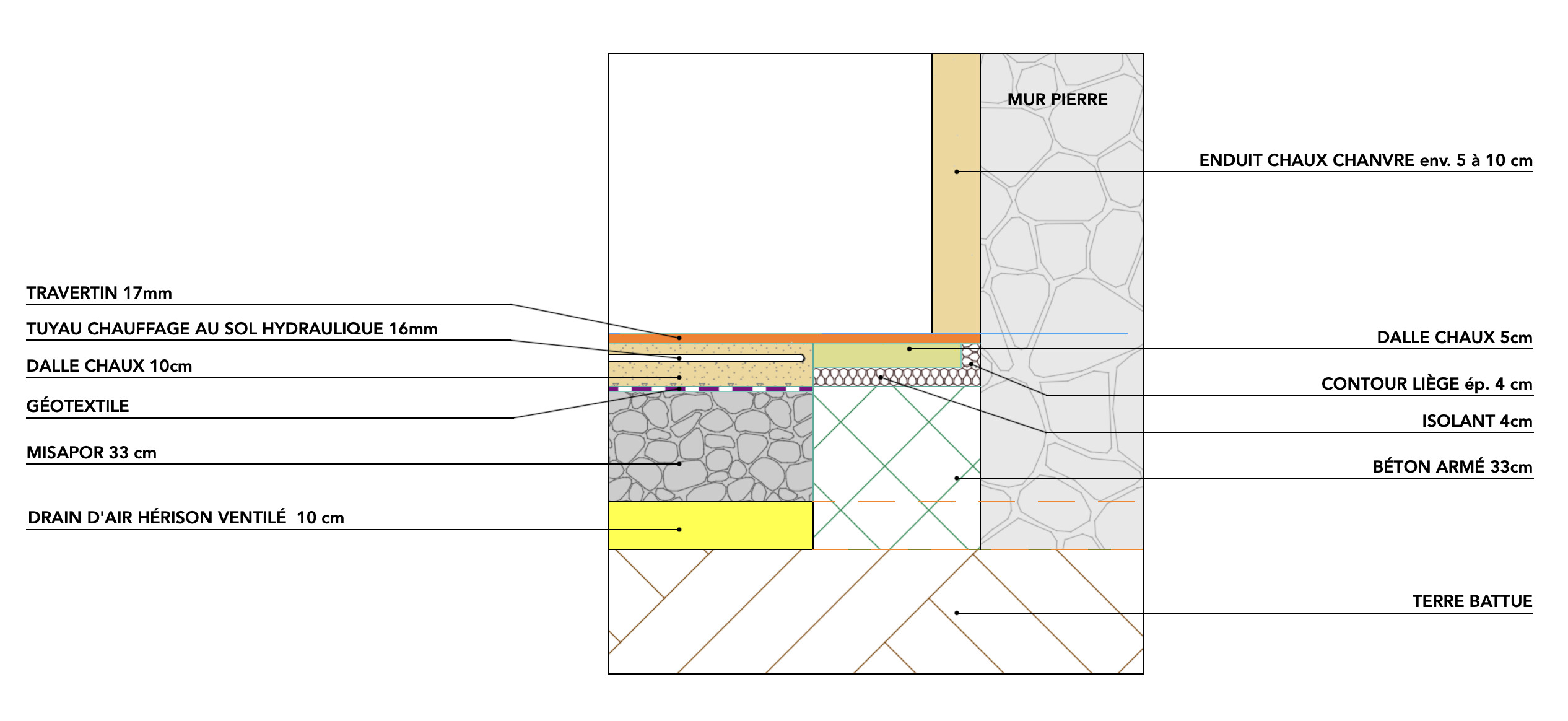 J’ai lu qu’il fallait au moins 15cm de dalle à la chaux… C’est chauuuuud !