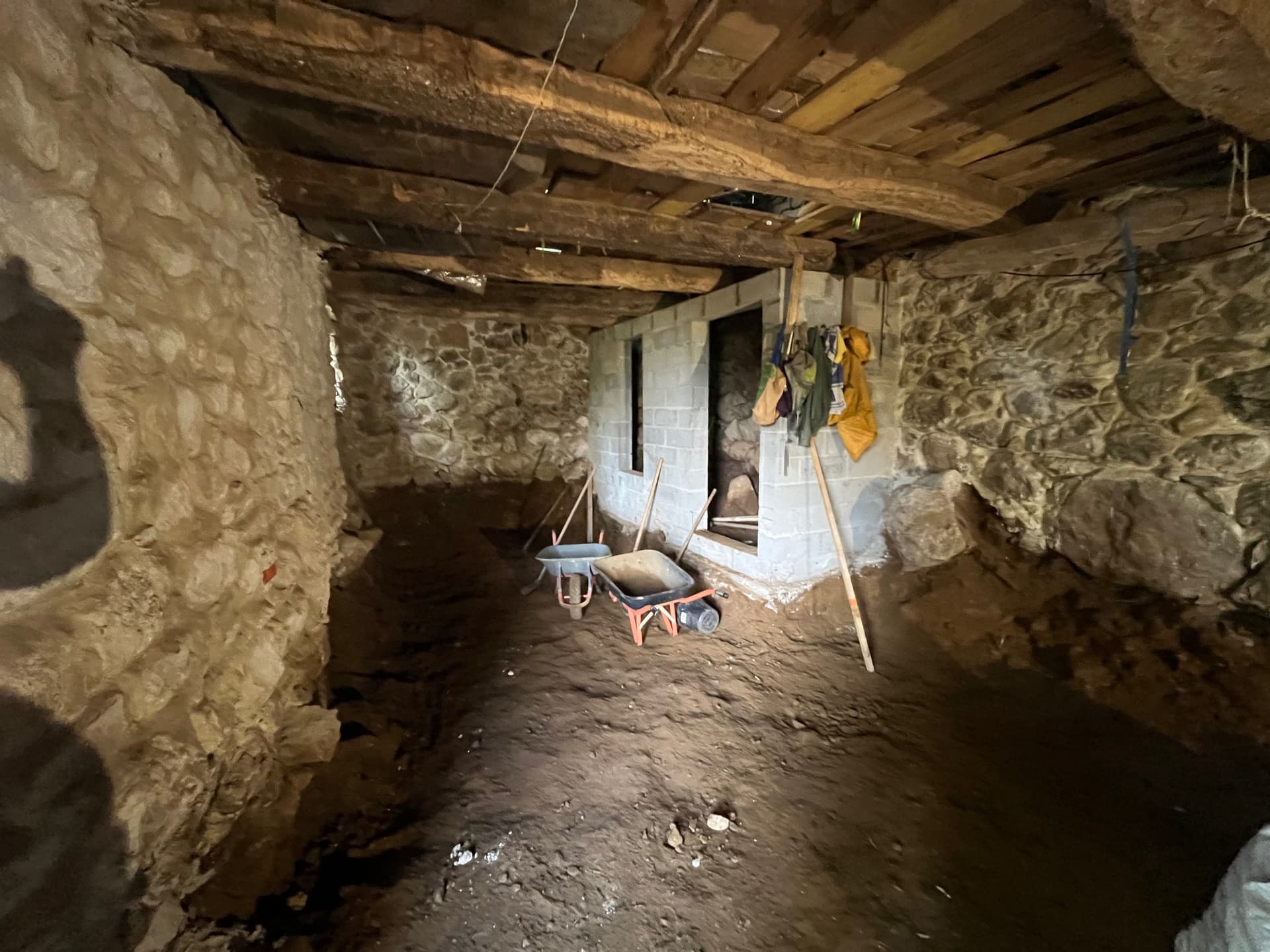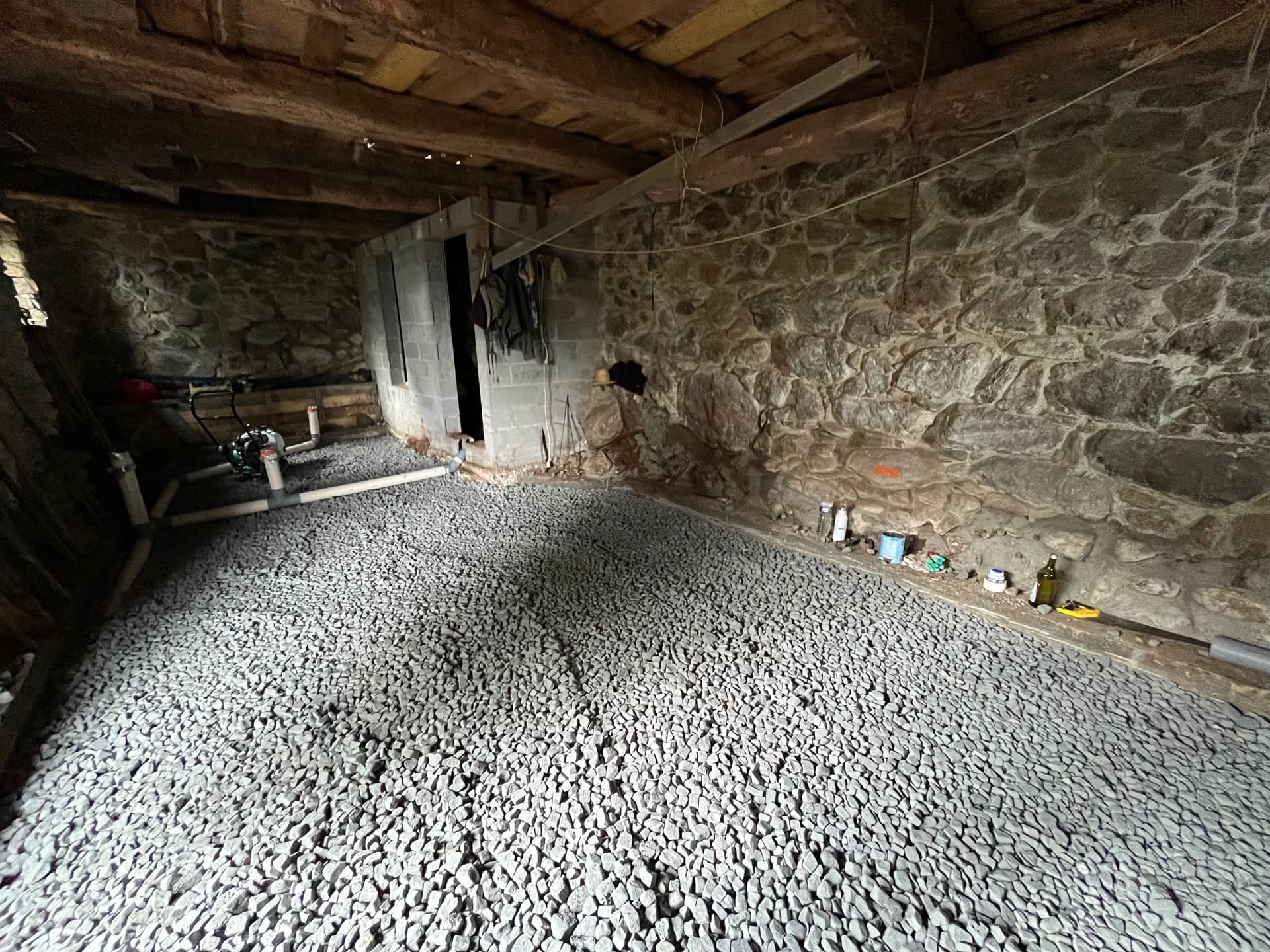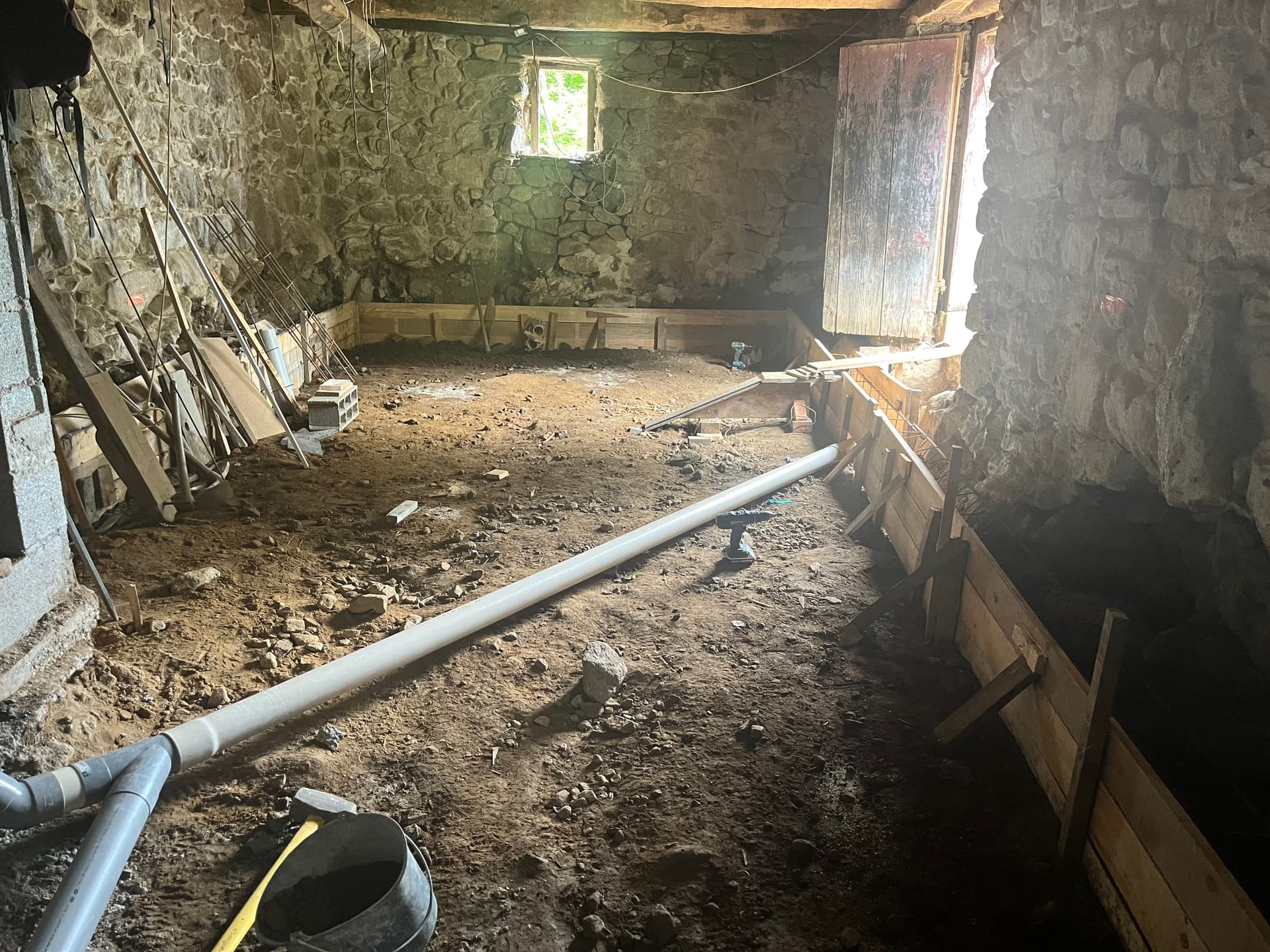 On rénove une grange en pierre semi-entérrée en Ariège. (50m2 au sol, 100m2 en tout)