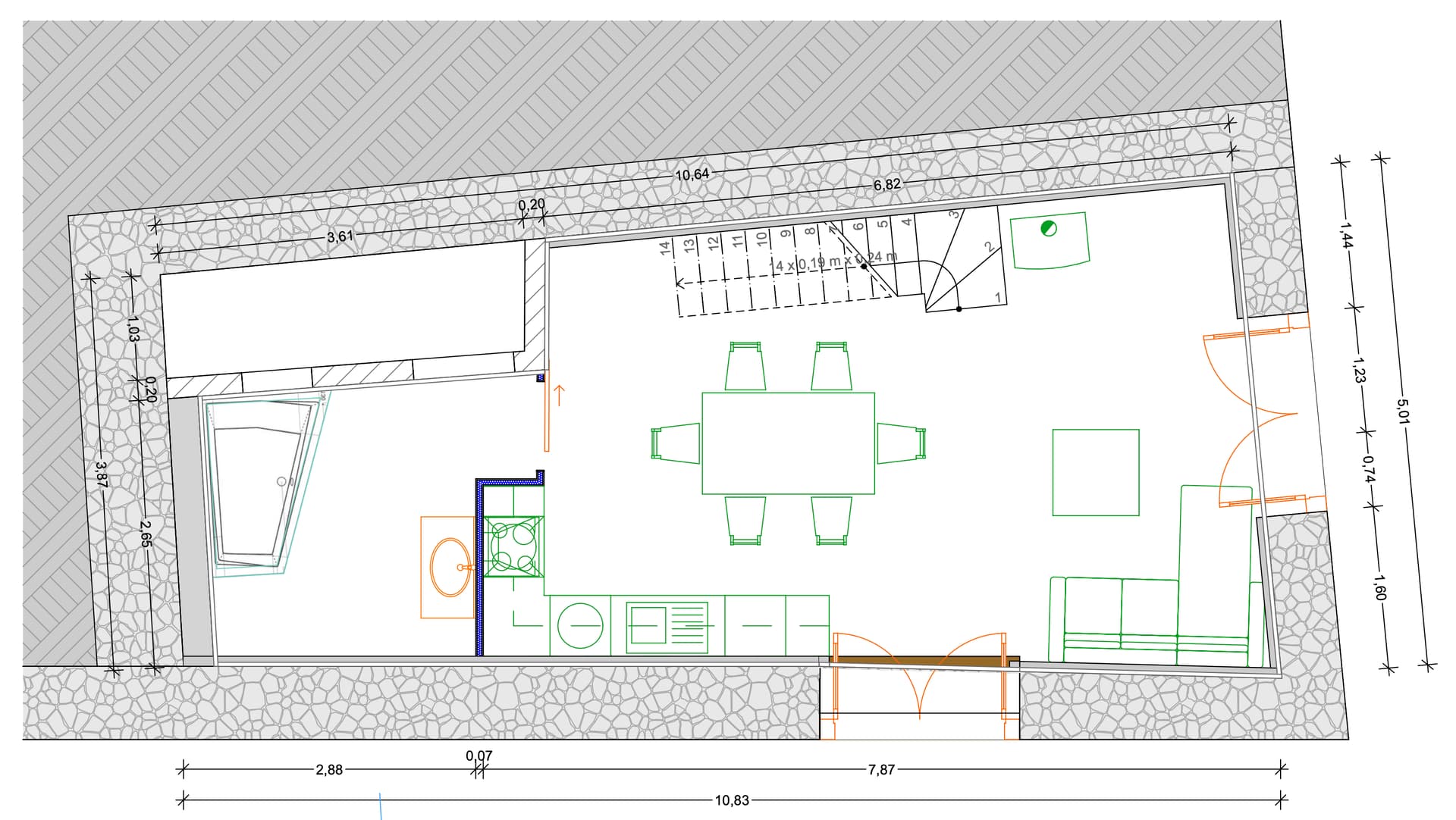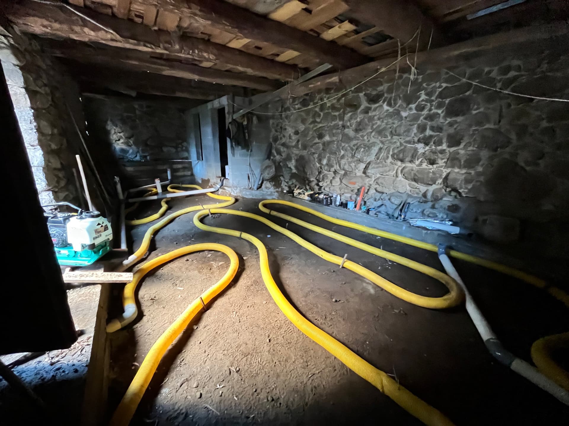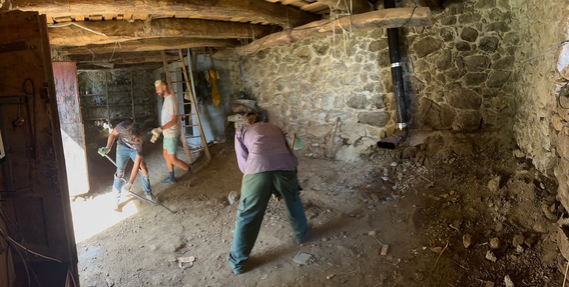 On rénove une grange en pierre semi-entérrée en Ariège. (50m2 au sol, 100m2 en tout)