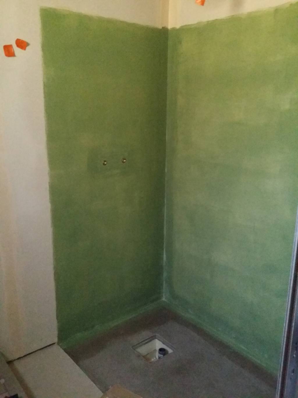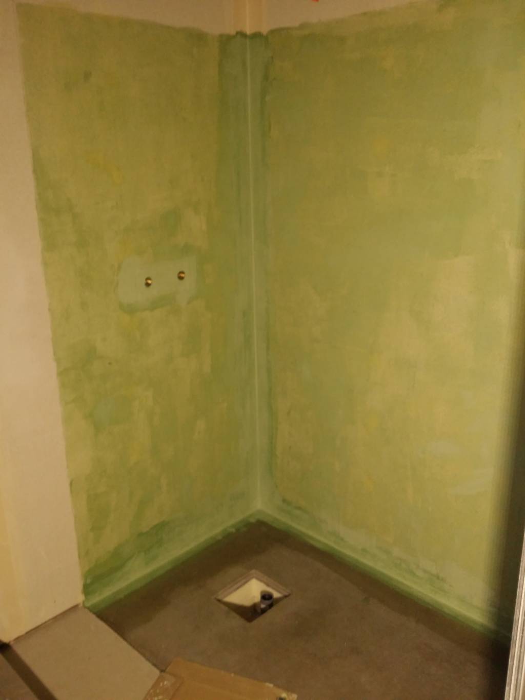 - étanchéité liquide sur les murs en plusieurs couches (bien badigeonner autour et en pied des sorties d’eau