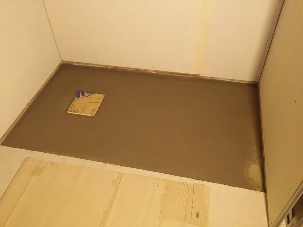 Coulage d’un ragréage liquide auto-nivelant pour aligner le receveur avec le niveau du sol fini