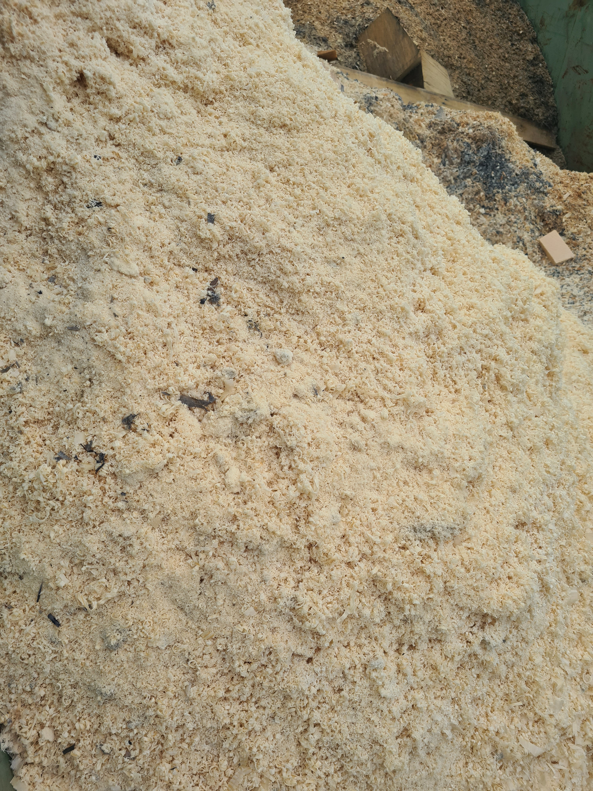 - De la sciure de bois quotidiennement (mélange de pin et d’épicéa, sciure issue de l’usinage composée de copeaux et de poussières)