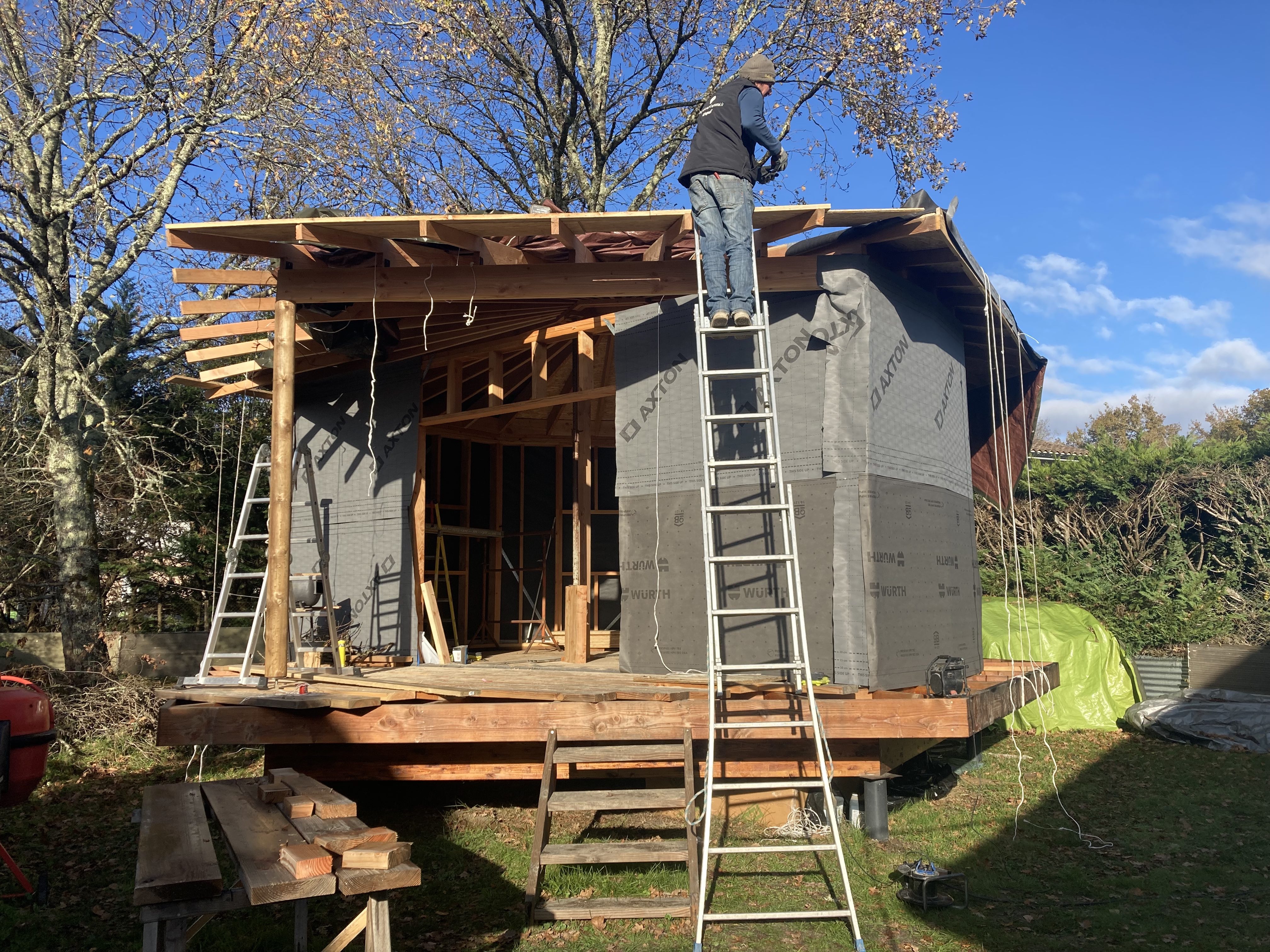 Je construis actuellement un petit habitat autonome sur le terrain de ma mère, en plein lotissement à Canejan. Ce prototype répond à plusieurs enjeux qui me tiennent à cœur : le logement accessible, l’urgence environnementale, et la possibilité de vivre près d’un parent vieillissant.