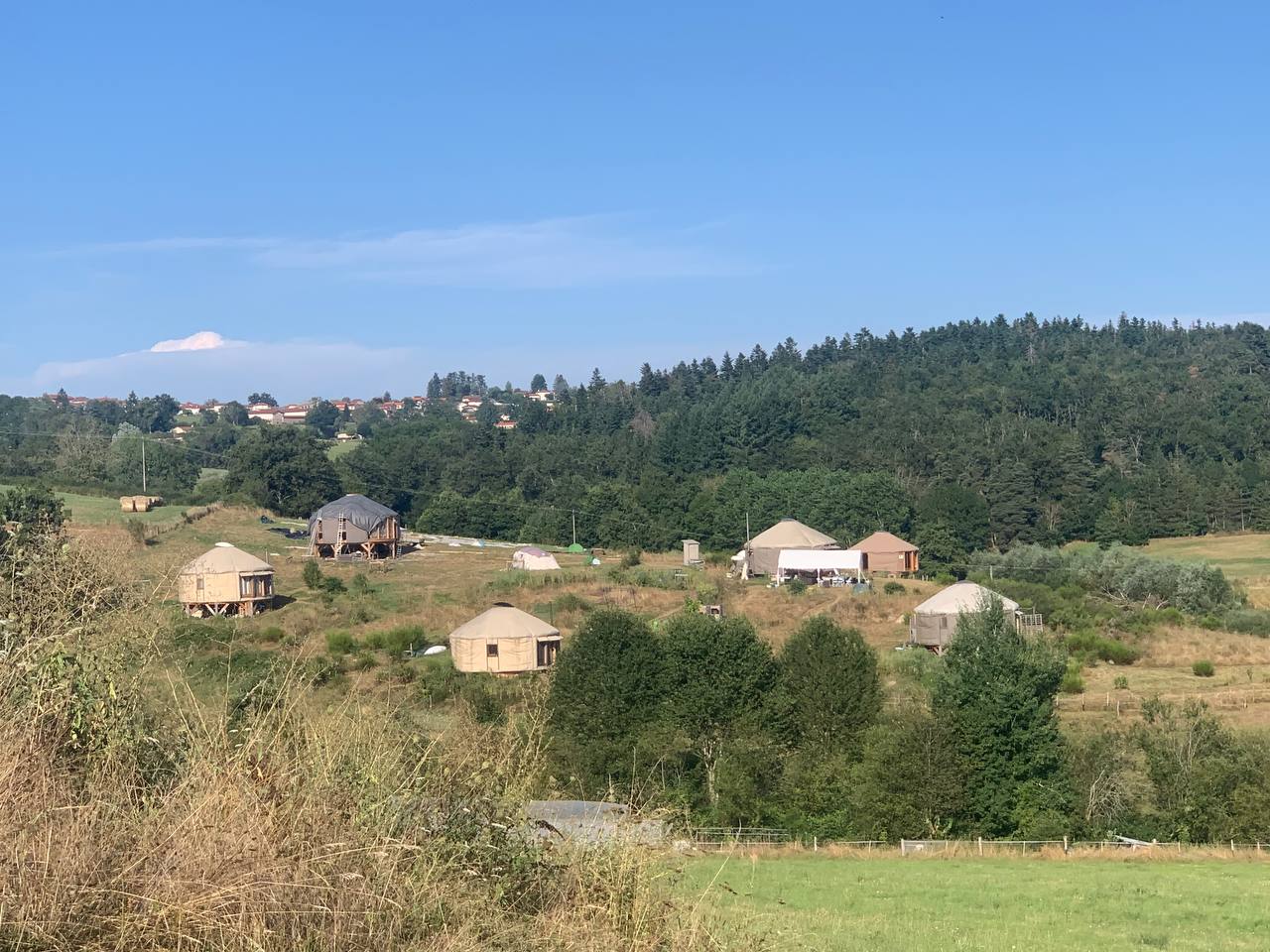 Notre lieu se compose de 6 yourtes : 4 habitations, une yourte commune pour les activités collectives et événements, et une yourte gîte bientôt disponible à la location. Le terrain accueille aussi un hectare de jardin maraîcher en permaculture (jardins privés, jardin commun et le projet de Rémi maraîcher), un verger avec des arbres fruitiers et un puits, une forêt en création pour protéger la biodiversité, un barnum-atelier qui abrite l’association Atelier Yourte, et une prairie avec plusieurs mares pour les chevaux.