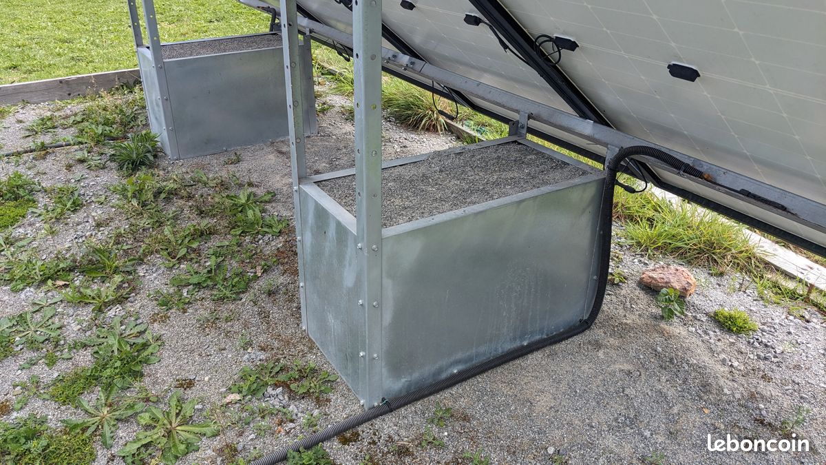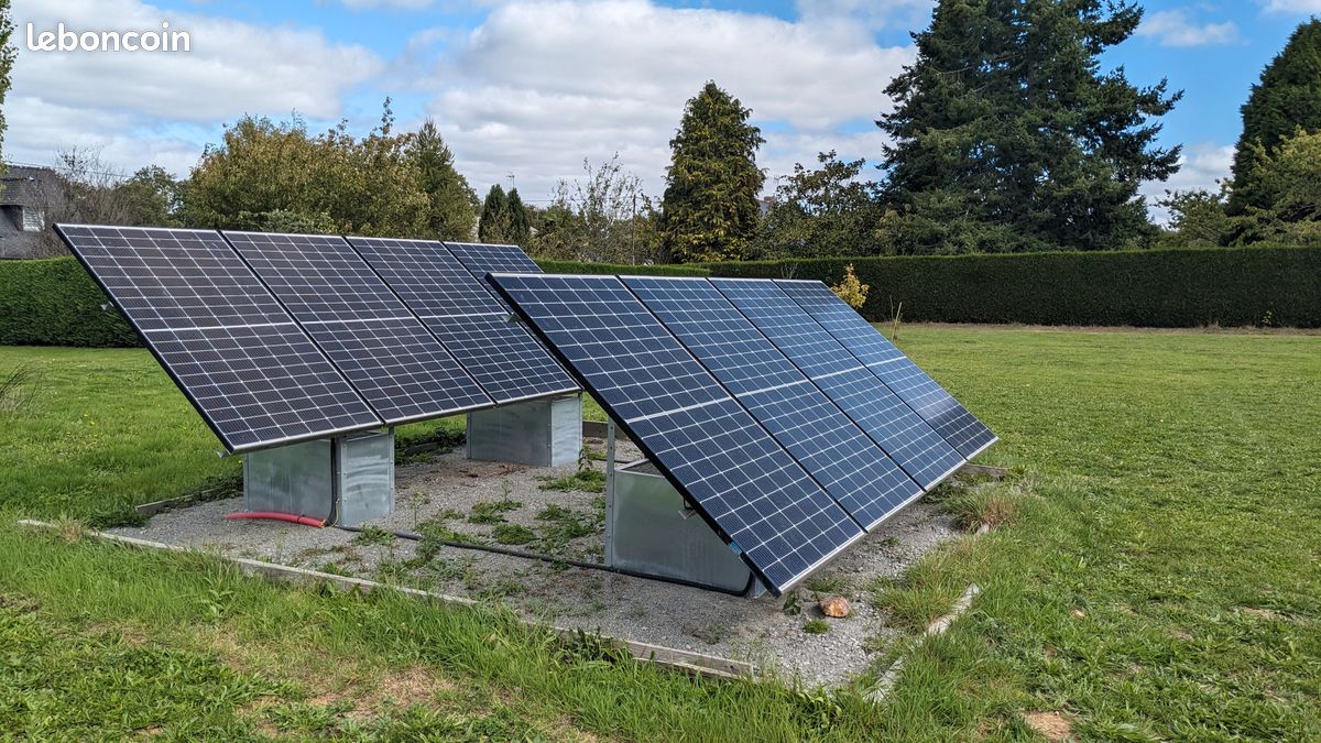 L’installation est vendue complète, incluant parafoudres et protections, ainsi que les supports pour fixation au sol (les panneaux peuvent être installés en toiture avec un kit prévu à cet effet, non fourni).
