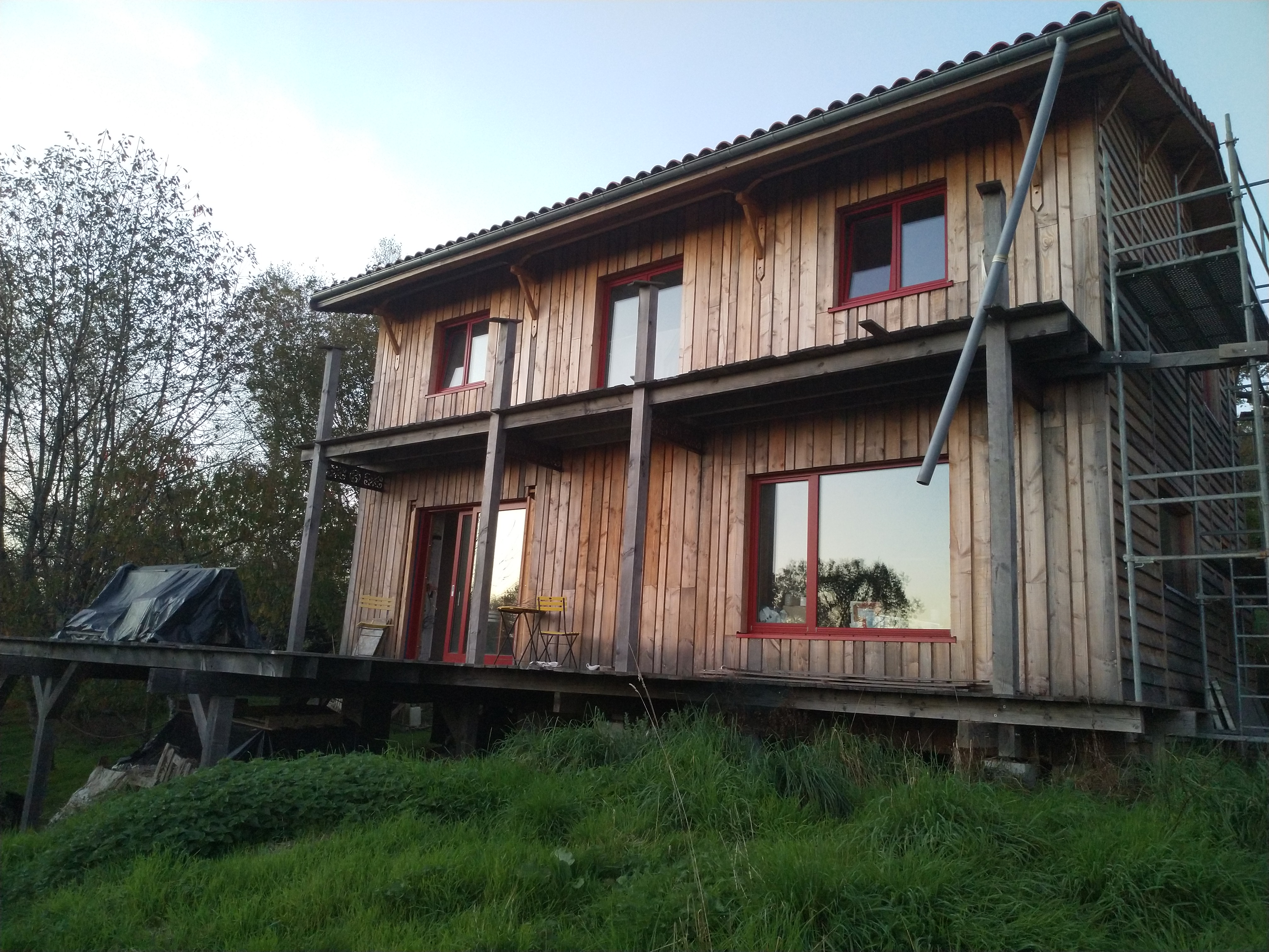 , suivi d’une visite complète de la maison. Tu pourras voir concrètement comment nous avons mis en œuvre la technique GREB, comment nous avons géré la construction sur pilotis dans la pente, et tous les détails pratiques de notre auto-construction.