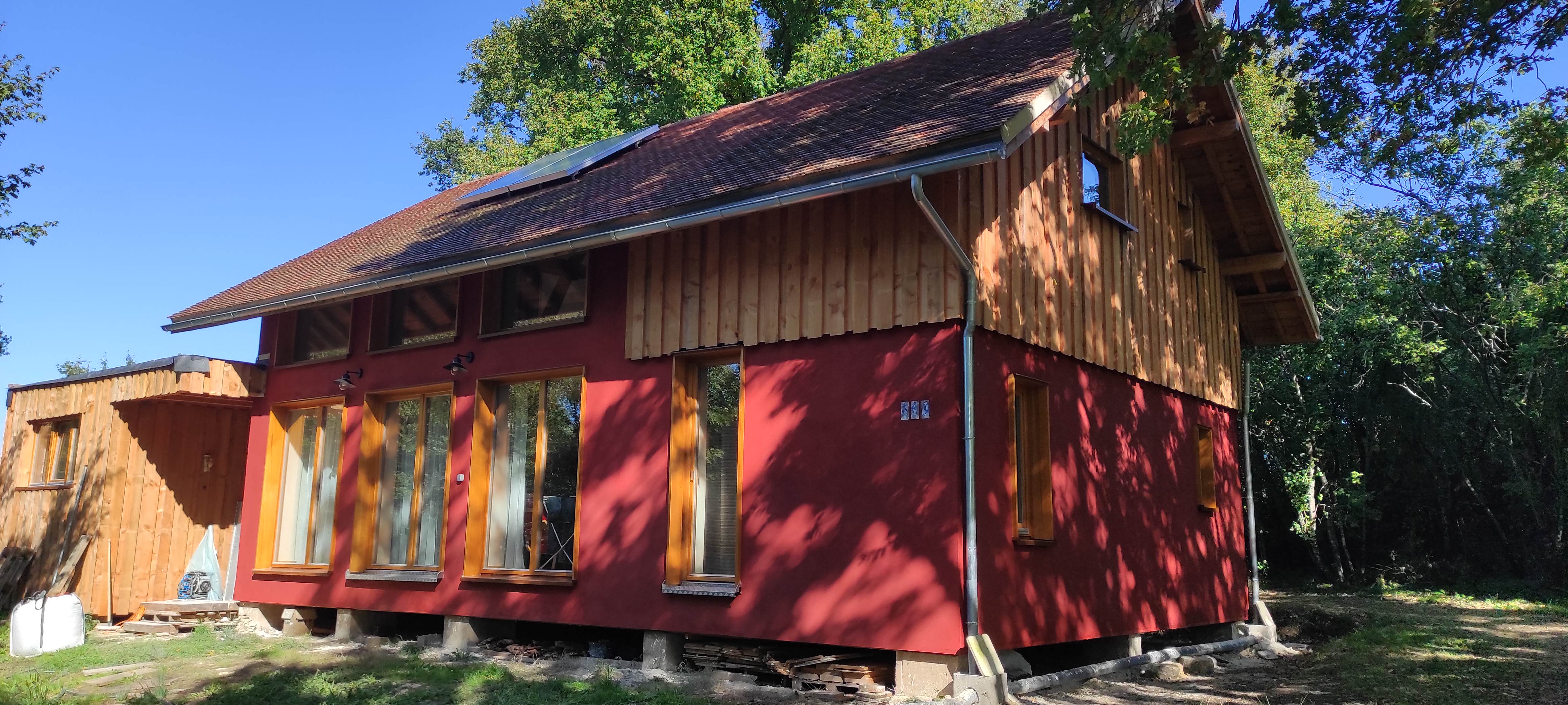 Architecte de formation, j’ai décidé pendant la crise sanitaire de sauter le pas et de construire notre maison en bois avec isolation paille. Mes 2 enfants m’ont bien soutenue pour lancer ce défi un peu fou ! Cette aventure m’a permis de rencontrer mon compagnon actuel, formateur paille, et de vivre une expérience humaine et technique incroyablement riche.