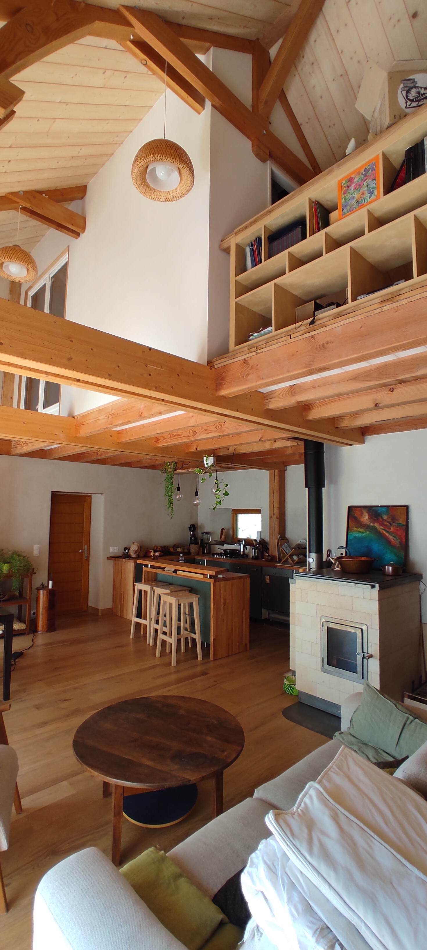 Ce qui rend ce projet singulier ? C’est une aventure d’auto-construction menée avec détermination, où j’ai fait le choix d’arrêter mon activité d’architecte pour me lancer pleinement dans cette construction. Chaque décision a été mûrement réfléchie, que ce soit pour les parties réalisées en autonomie ou pour le choix des entreprises d’accompagnement.