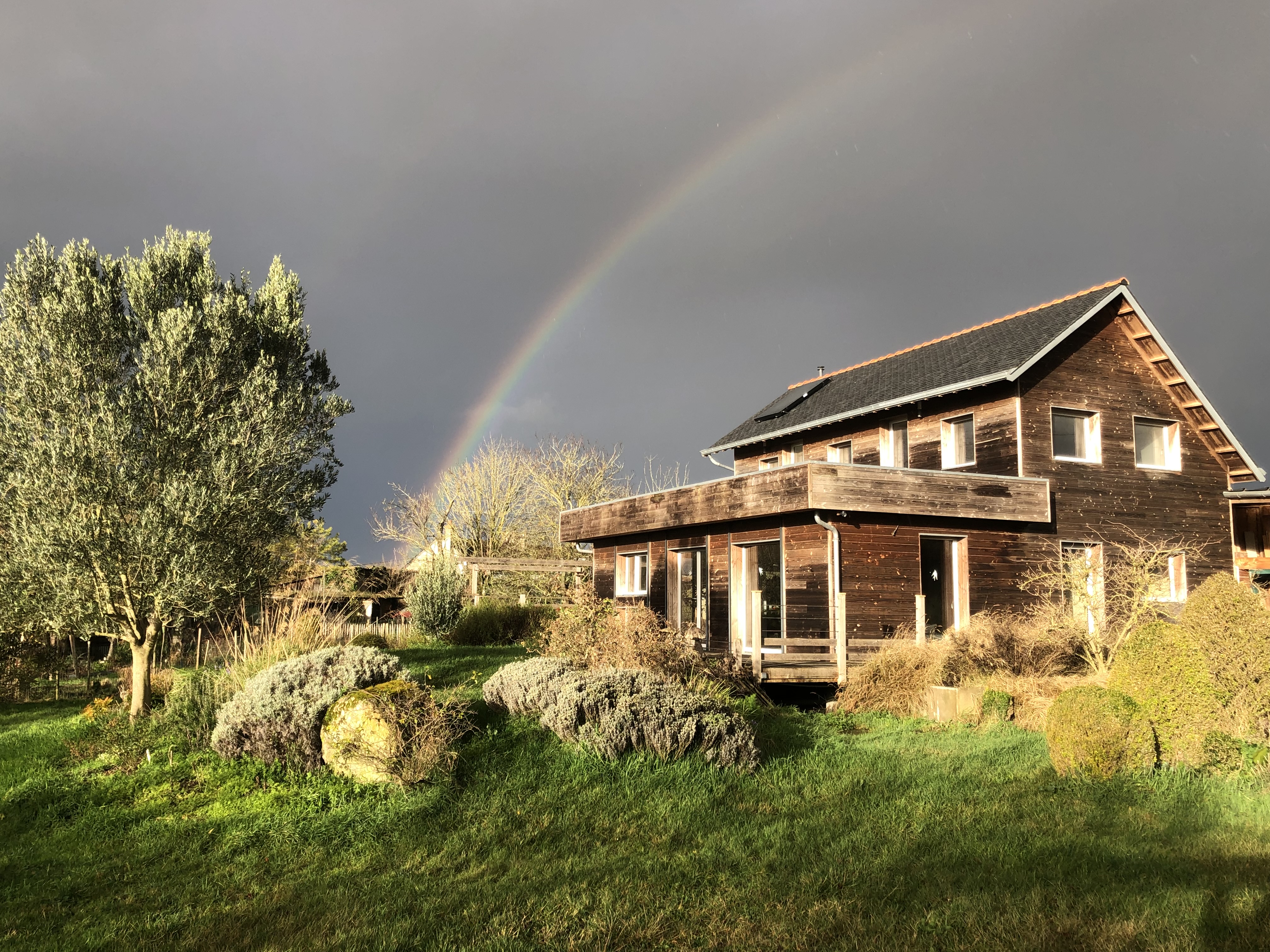 Certains équipements sont installés et attendent leur mise en service : puits canadien, chauffe-eau solaire, et nous prévoyons des panneaux solaires sur la toiture bac acier. Le jardin accueille des plantes résistantes au calcaire et à la sécheresse, et nous avons déjà un four à pizza pour les fouaces ! D’autres projets nous attendent : toilettes sèches extérieures, four solaire, fumoir, séchoir…