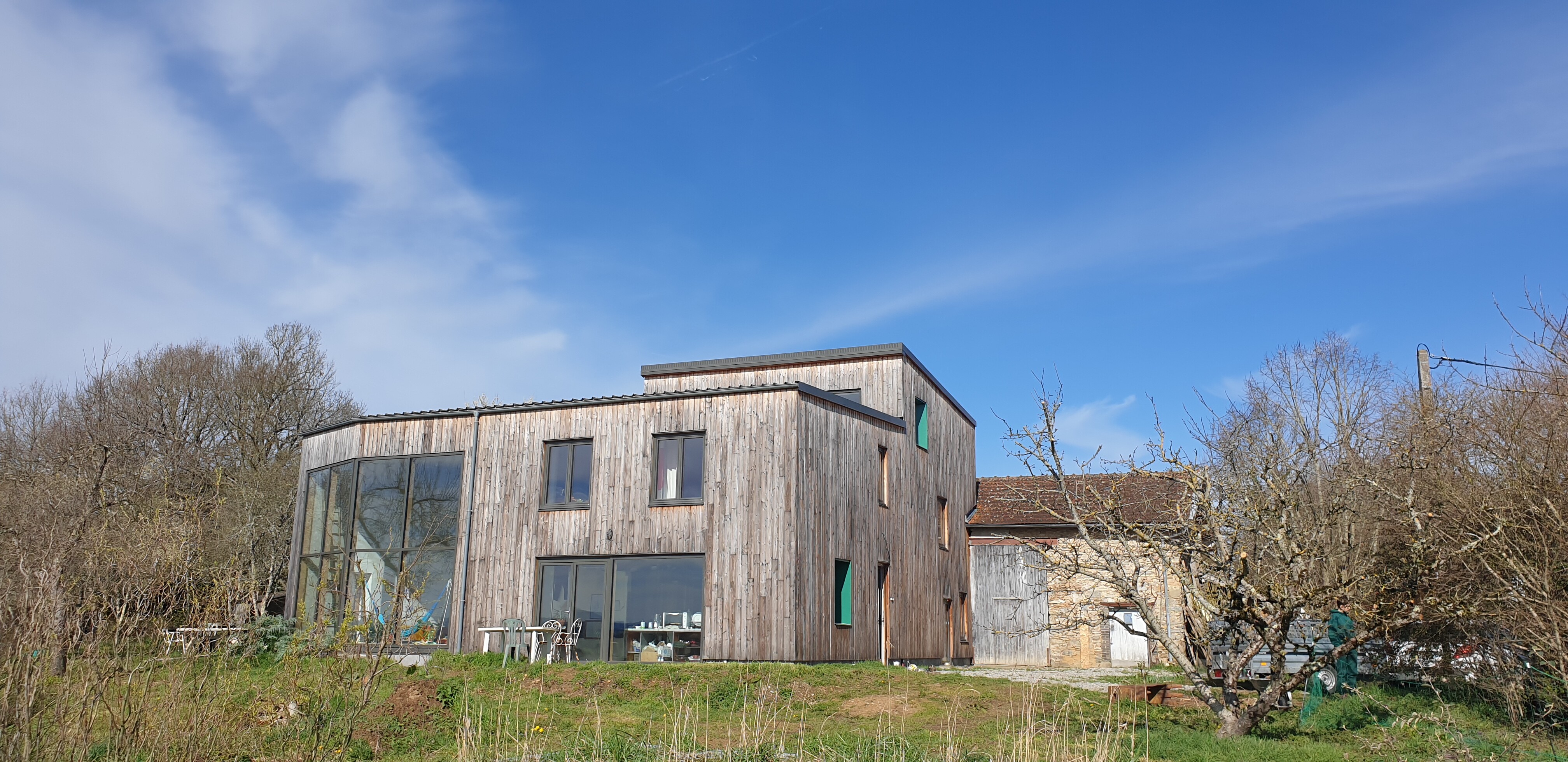Je suis designer global et j’ai mené ce projet de A à Z : du premier coup de crayon aux finitions (qui ne sont d’ailleurs pas tout à fait terminées !). Cette aventure s’est étalée sur plusieurs années et m’a permis de monter en compétences, au point de proposer aujourd’hui dans mon activité professionnelle de l’accompagnement et de la réalisation en éco-construction.
