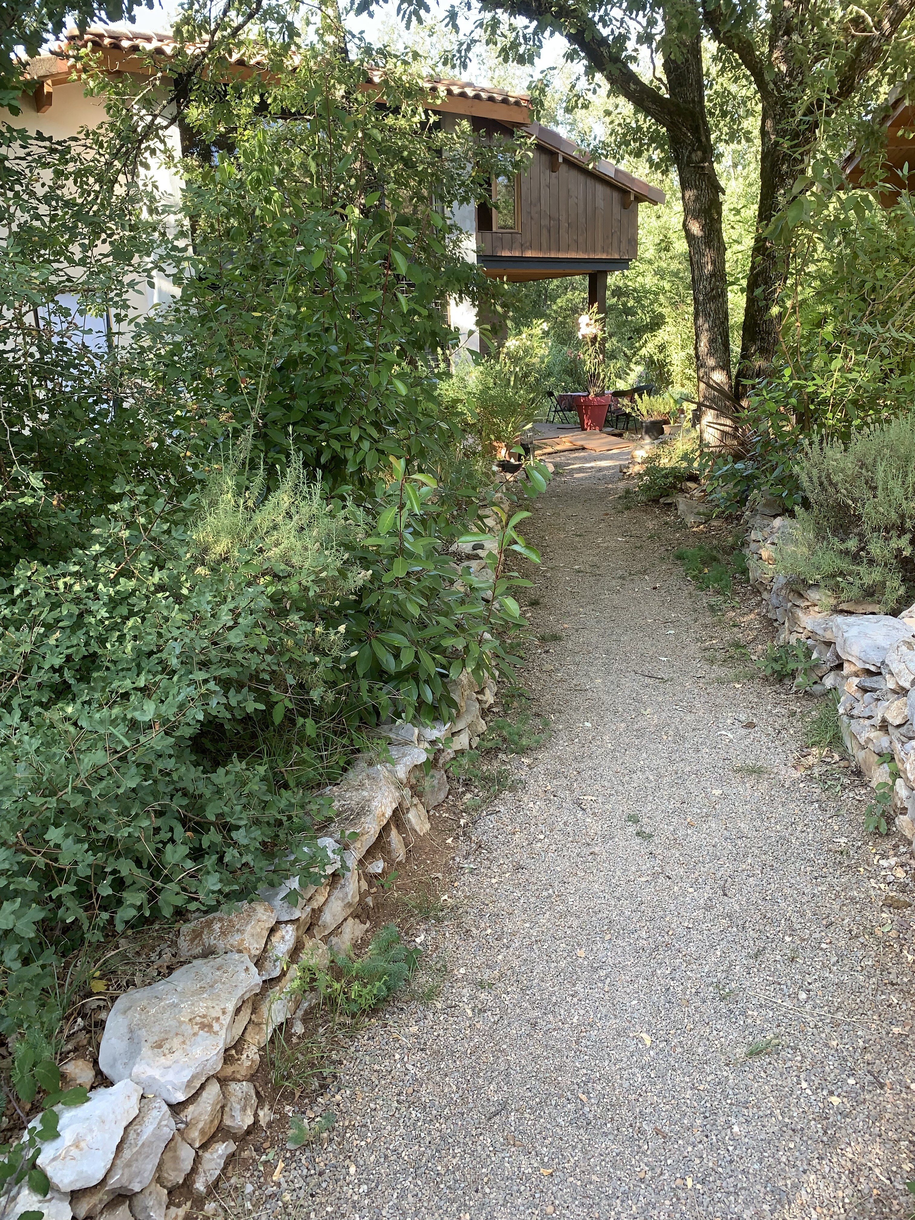 J’ai construit cette maison sur un terrain boisé, pentu et pierreux, avec une contrainte forte : respecter l’environnement au maximum. Un seul arbre a été coupé ! L’idée était d’adapter les constructions aux caractéristiques du terrain plutôt que de le transformer, tout en respectant les formes architecturales locales.