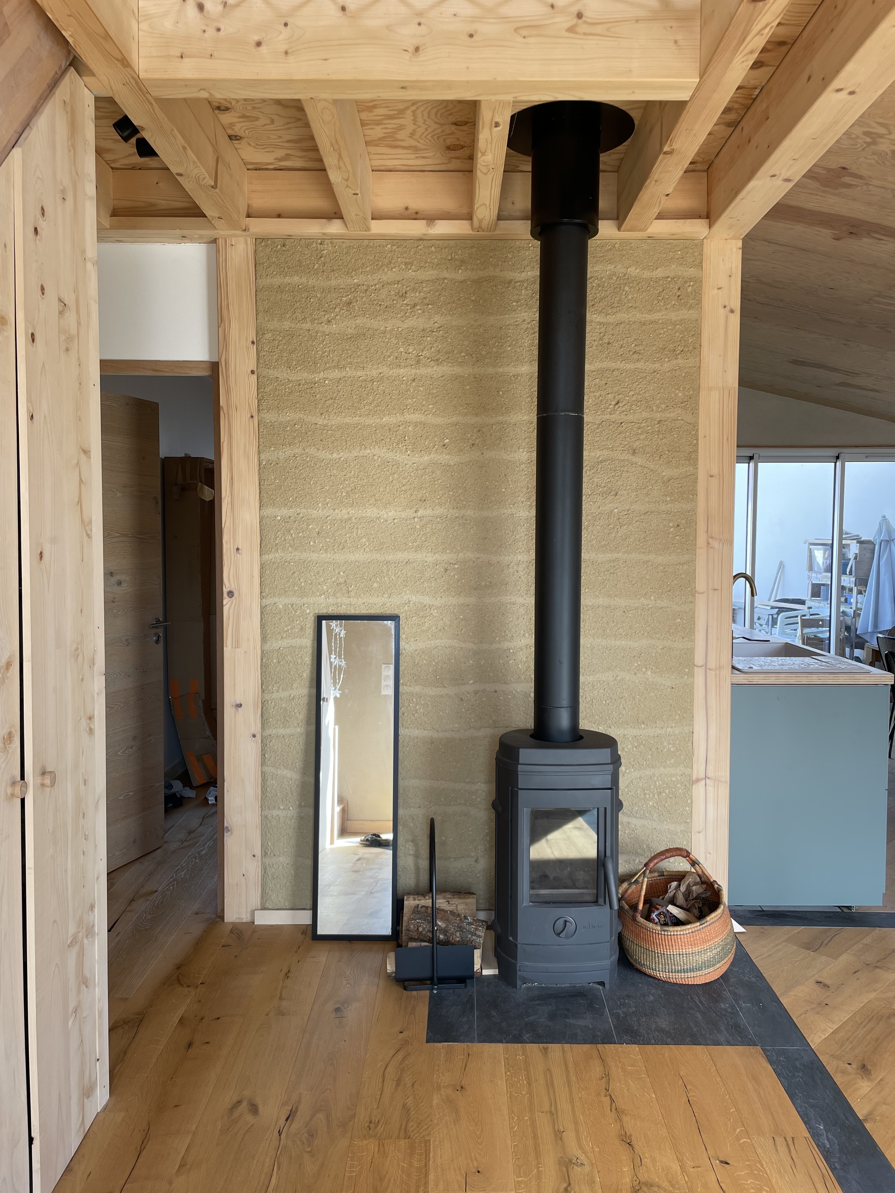 Nous prendrons le temps d’échanger sur les techniques et matériaux que nous avons mis en œuvre : ossature bois, remplissage et insufflation paille, enduits terre, billes de liège, laine de bois, fibres de bois au sol, pose du bardage, menuiserie à partir de planches brutes de sciage…