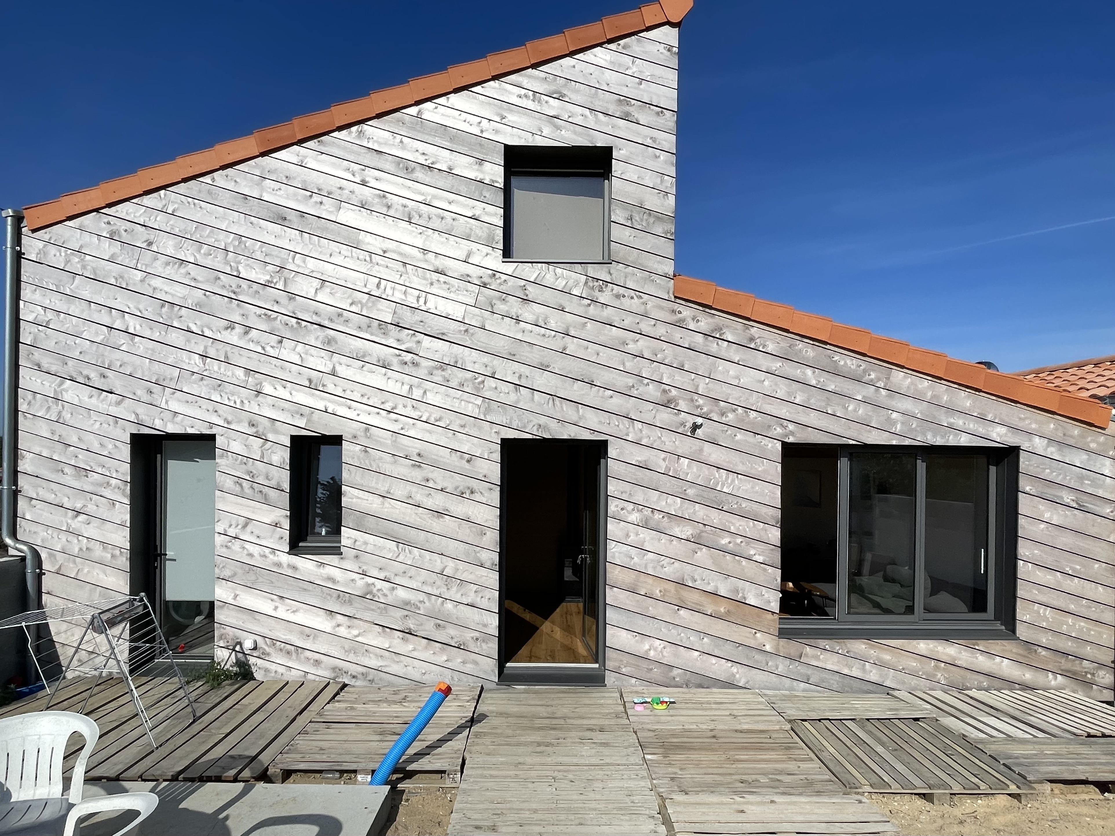 La première phase de chantier est terminée : la maison est achevée et nous y vivons depuis 1 an. L’atelier et le projet d’autonomie sont en réflexion. Ce qui rend ce projet singulier, c’est d’avoir relevé le défi d’une maison performante sur une parcelle difficile, si près de l’océan, tout en menant l’aventure de l’autoconstruction avec notre petit Loup, 4 ans.