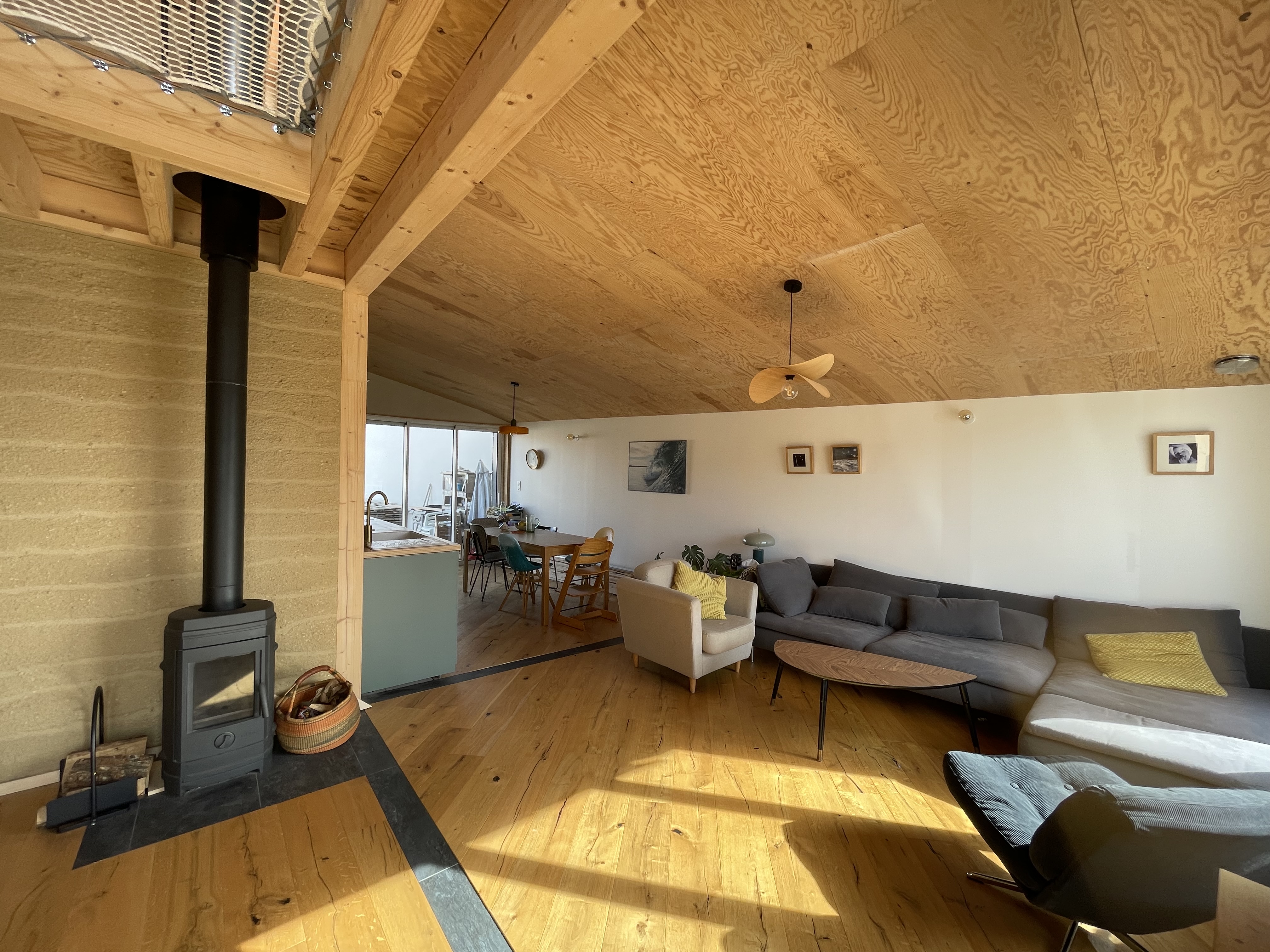 Je partagerai avec toi notre retour d’expérience après 1 an dans la maison : le plaisir et l’immense confort de vivre dans une maison en terre et en paille si près de l’océan. Nous pourrons aussi parler de la conception d’une maison presque passive sur une parcelle contrainte, de notre projet d’autonomie et de toutes les anticipations pour le rendre possible un jour.