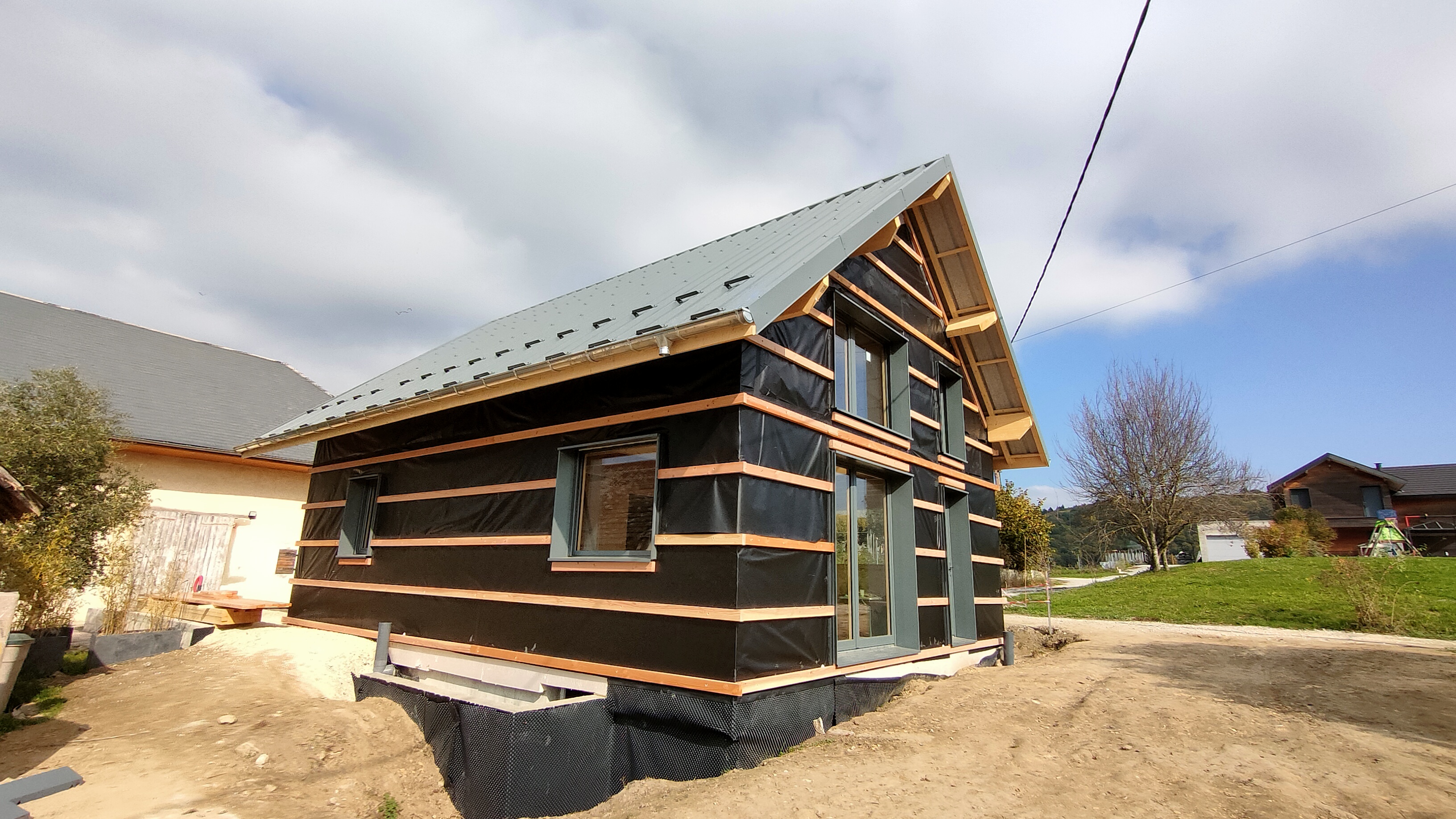 Tout a commencé par le démontage complet de l’ancienne grange — toiture, charpente, bardage — que j’ai réalisé de mes propres mains pour respecter mon permis de construire. Accompagnée par une architecte, j’ai ensuite confié la maçonnerie avant de participer à l’ossature bois : isolation, pare-pluie, et maintenant le bardage que je pose moi-même.