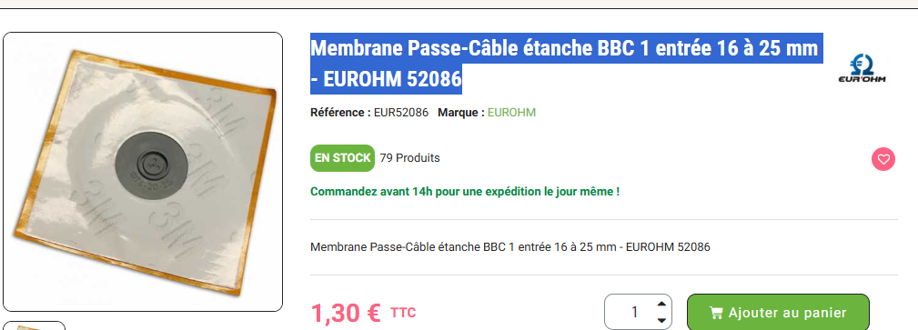 Ajouter images - des membranes Passe-Câble étanche BBC 1 entrée 16 à 25 mm - EUROHM 52086 Quelqu'un a-t-il un retour d'expérience sur ces produits ? Y en a-t-il d'autres plus intéressants ?