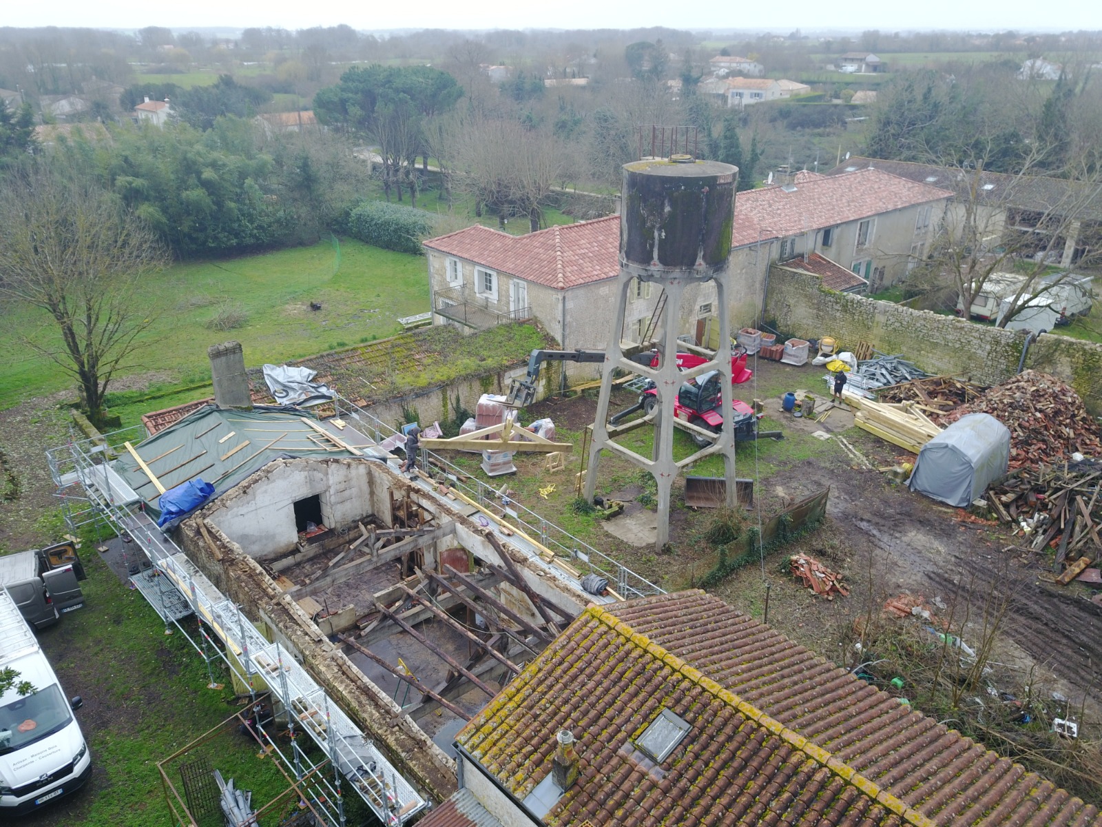 Cette recherche m’a conduite jusqu’au Logis de La Lande, dont le potentiel patrimonial et la présence du château d’eau ont ouvert de nouvelles perspectives. Depuis l’acquisition, je construis ce projet étape par étape : comprendre les bâtiments existants, imaginer leurs usages futurs et engager la réhabilitation avec une attention particulière portée aux matériaux naturels.