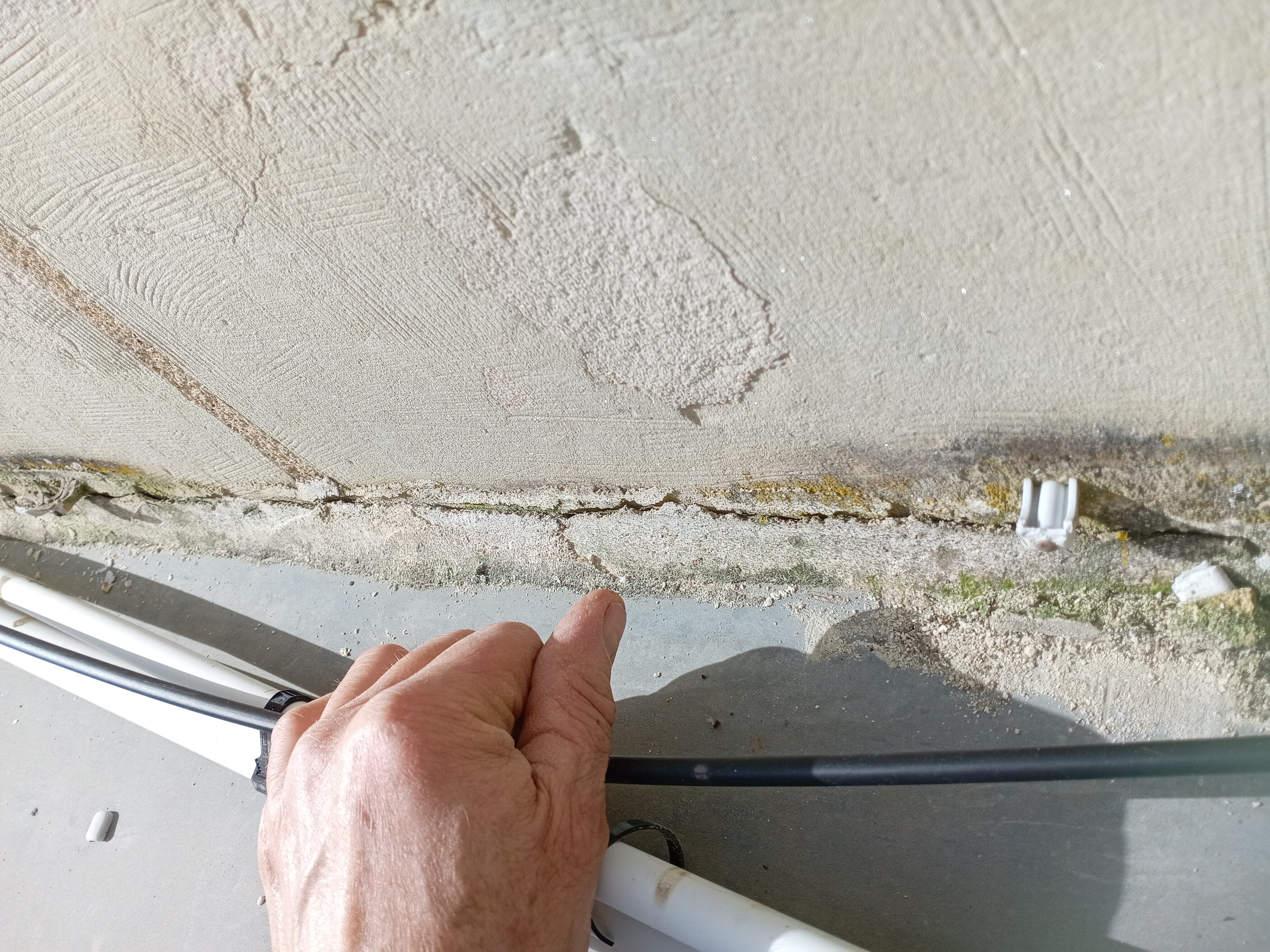 - Tuyaux de chauffage central percés sous une dalle de béton armé (en dessous, il y a probablement des caves… Doué étant un gruyère !)