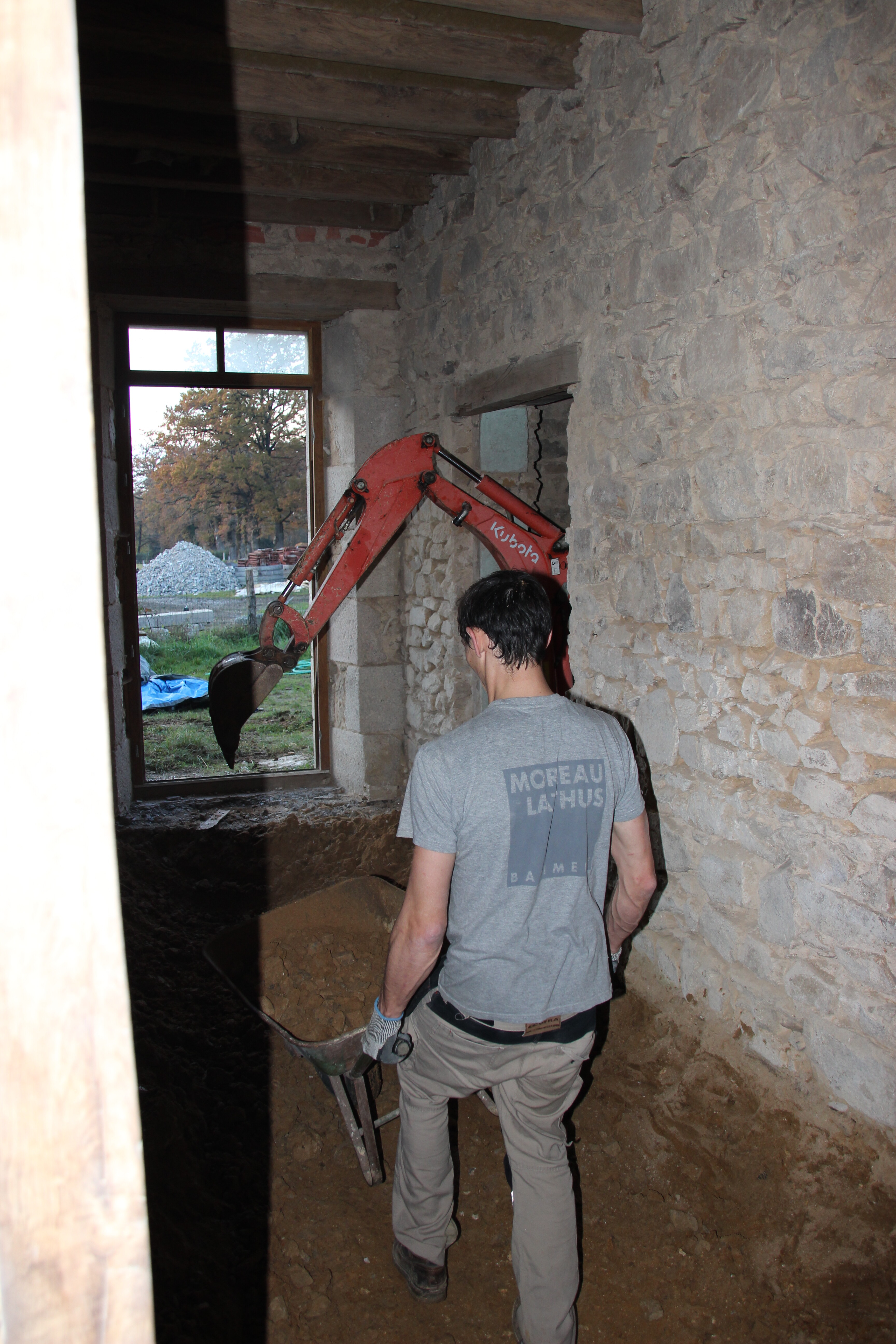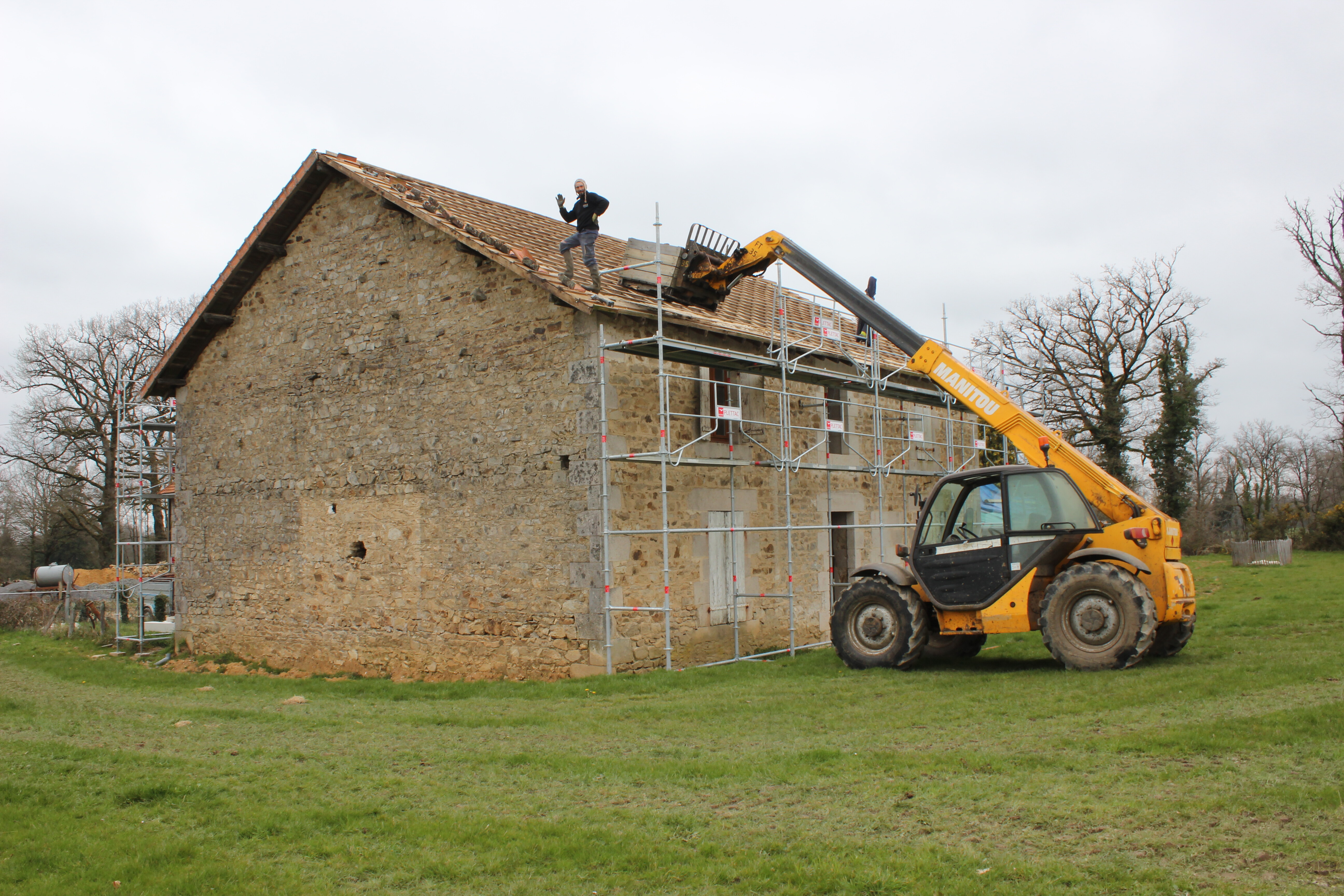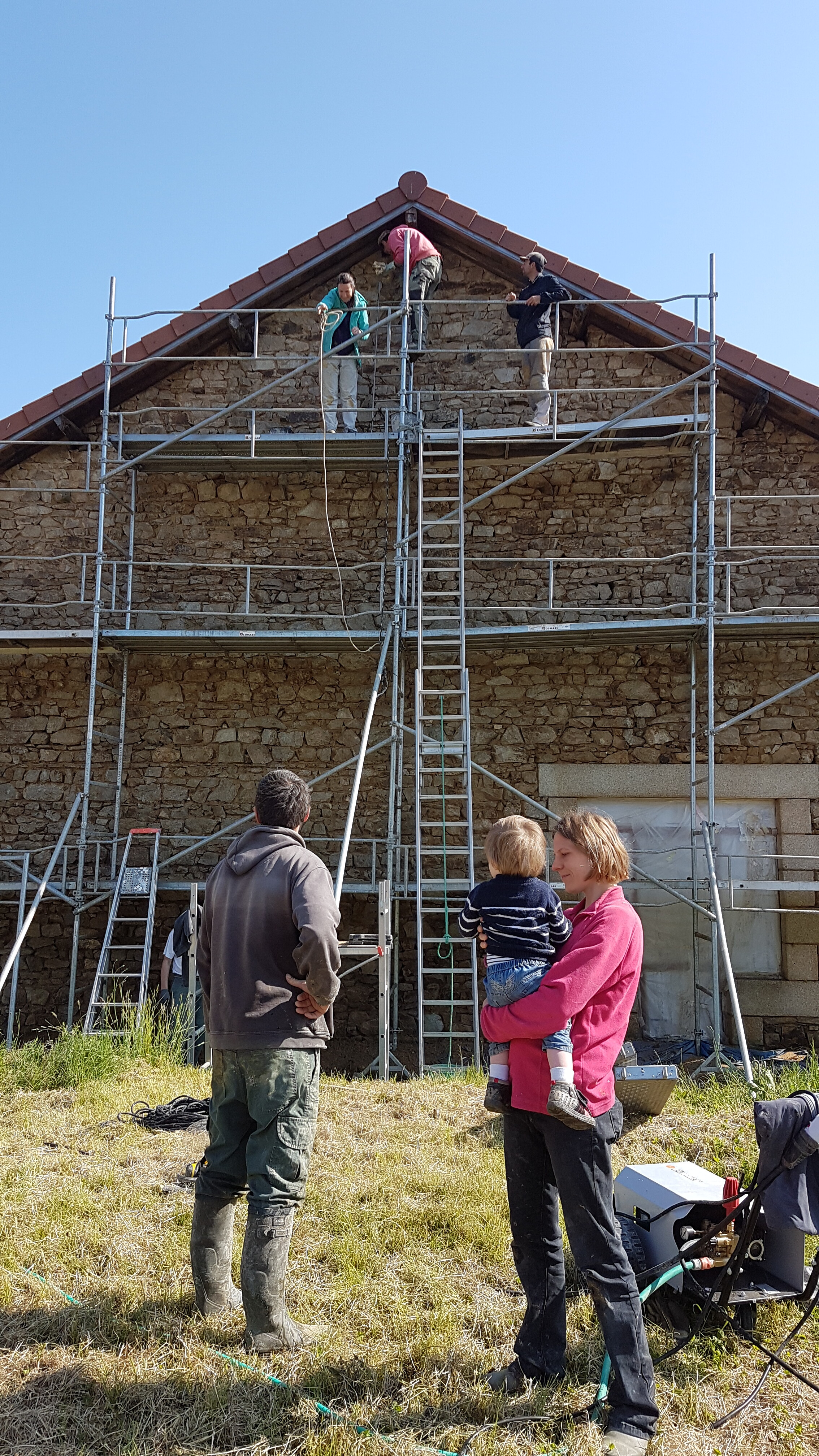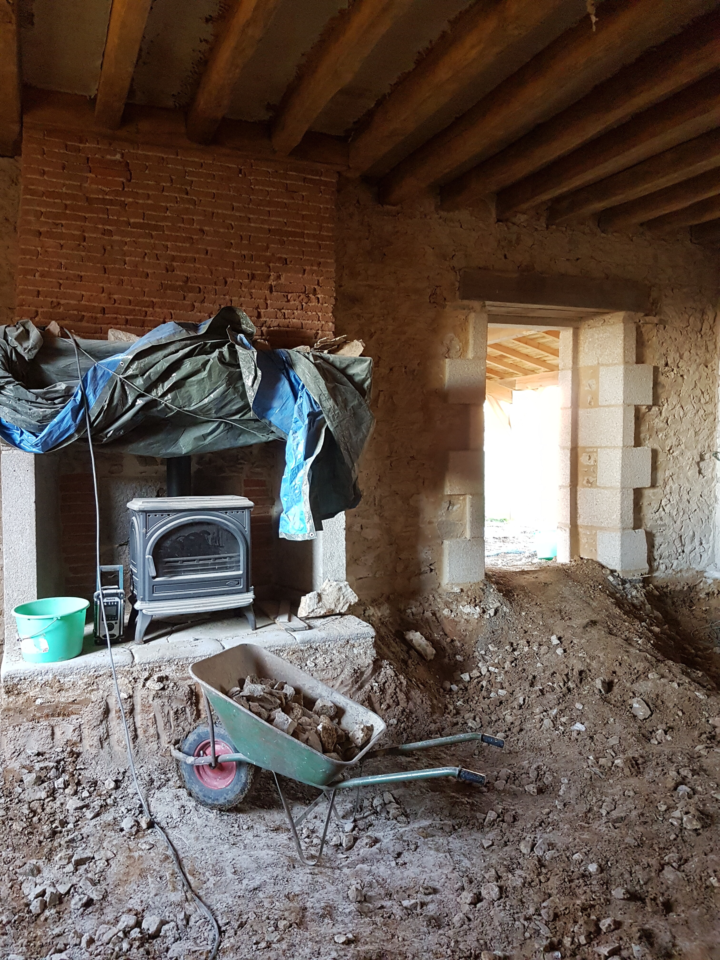 Je rénove une ferme en pierre en Haute-Vienne, avec l’ambition de retrouver des techniques traditionnelles et de gagner en autonomie vis-à-vis de l’industrie du bâtiment. Le rez-de-chaussée est bien avancé : plancher chauffant, tomettes posées, cloisons montées avec isolant textile recyclé, toilettes sèches et système de pédoépuration validé par le SPANC. J’ai créé des ouvertures en pierre de taille et testé différents modes de faire : seule, avec des artisans (parfois décevants !), avec des participants Twiza.