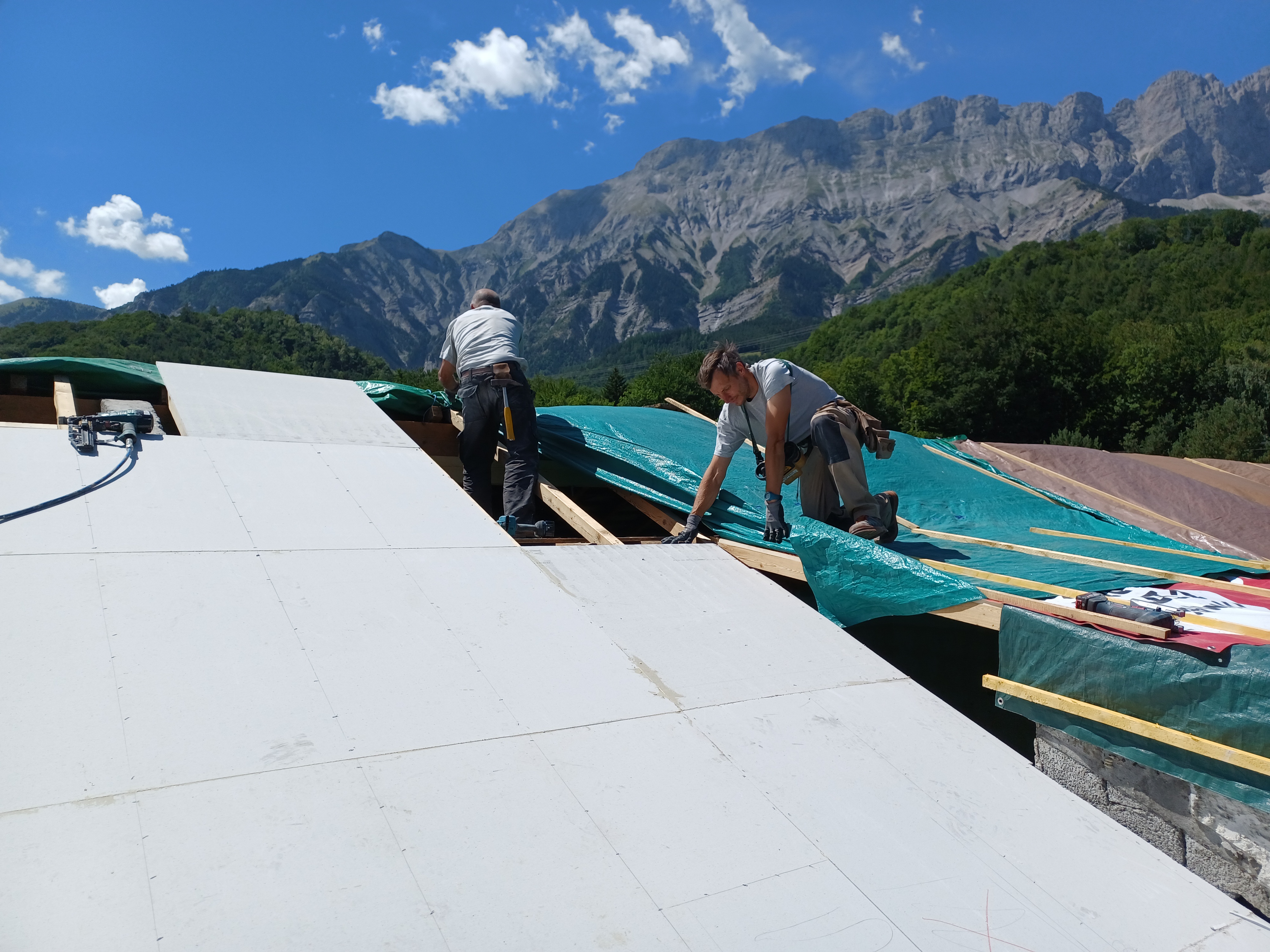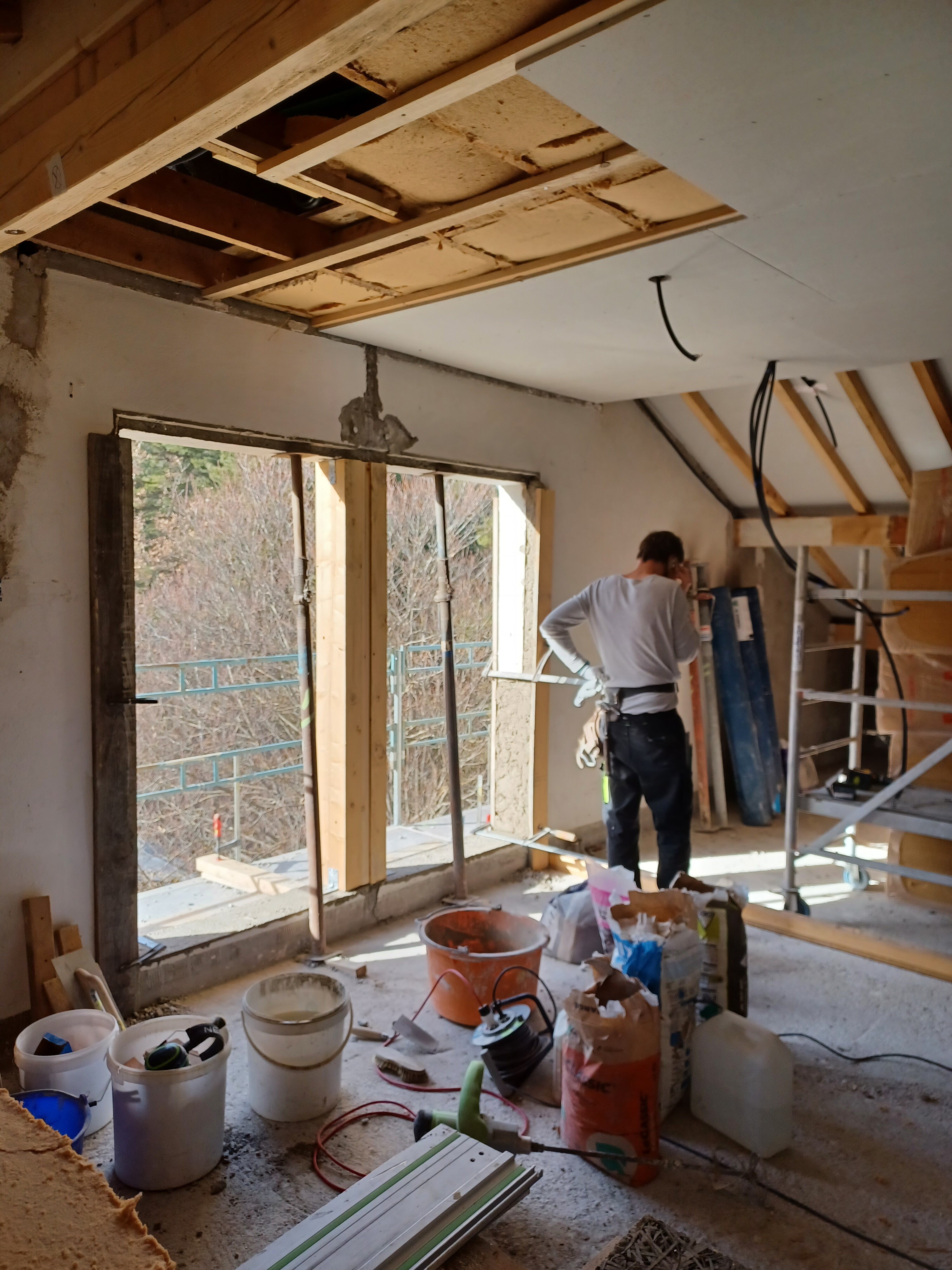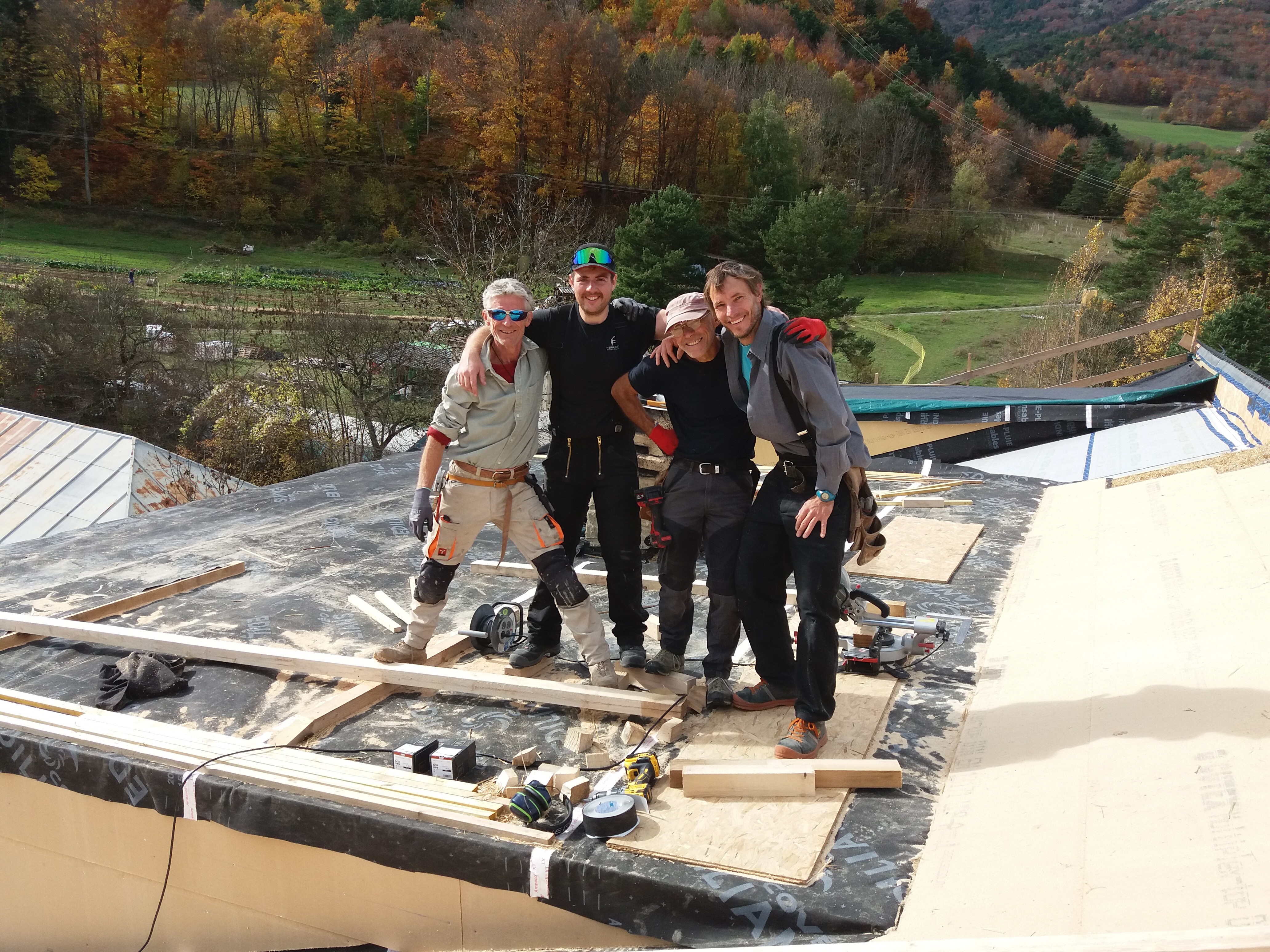En 2025, nous avons refait entièrement le toit de 600 m² avec une isolation en bottes de paille. 2026 sera l’année de l’aménagement des combles (3e étage) : cloisons en ossature bois, réemploi de matériaux, enduits terre et chaux, création d’ouvertures, planchers chauffants… Puis nous continuerons par le réagencement du 2e étage, et en 2027 du 1er étage. Plusieurs chantiers participatifs Twiza sont en perspective !