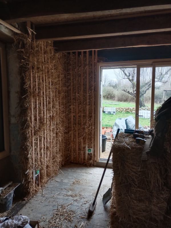 Construction paille : isolation des murs par l’intérieur en paille et laine de bois