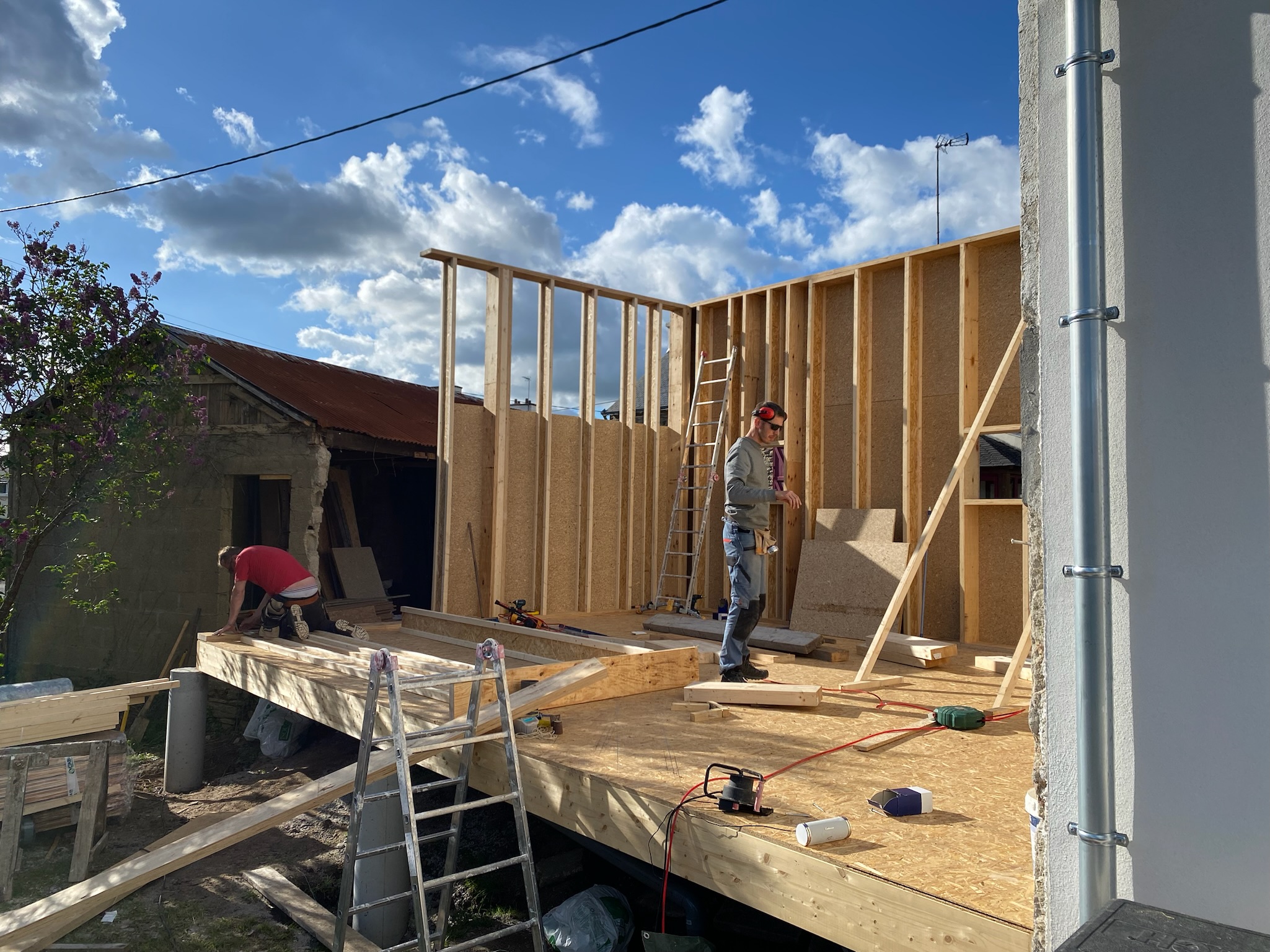 Autoconstruction ossature bois — Réalisation d’une extension avec poutres en I, dalle bois sur plots, de A à Z