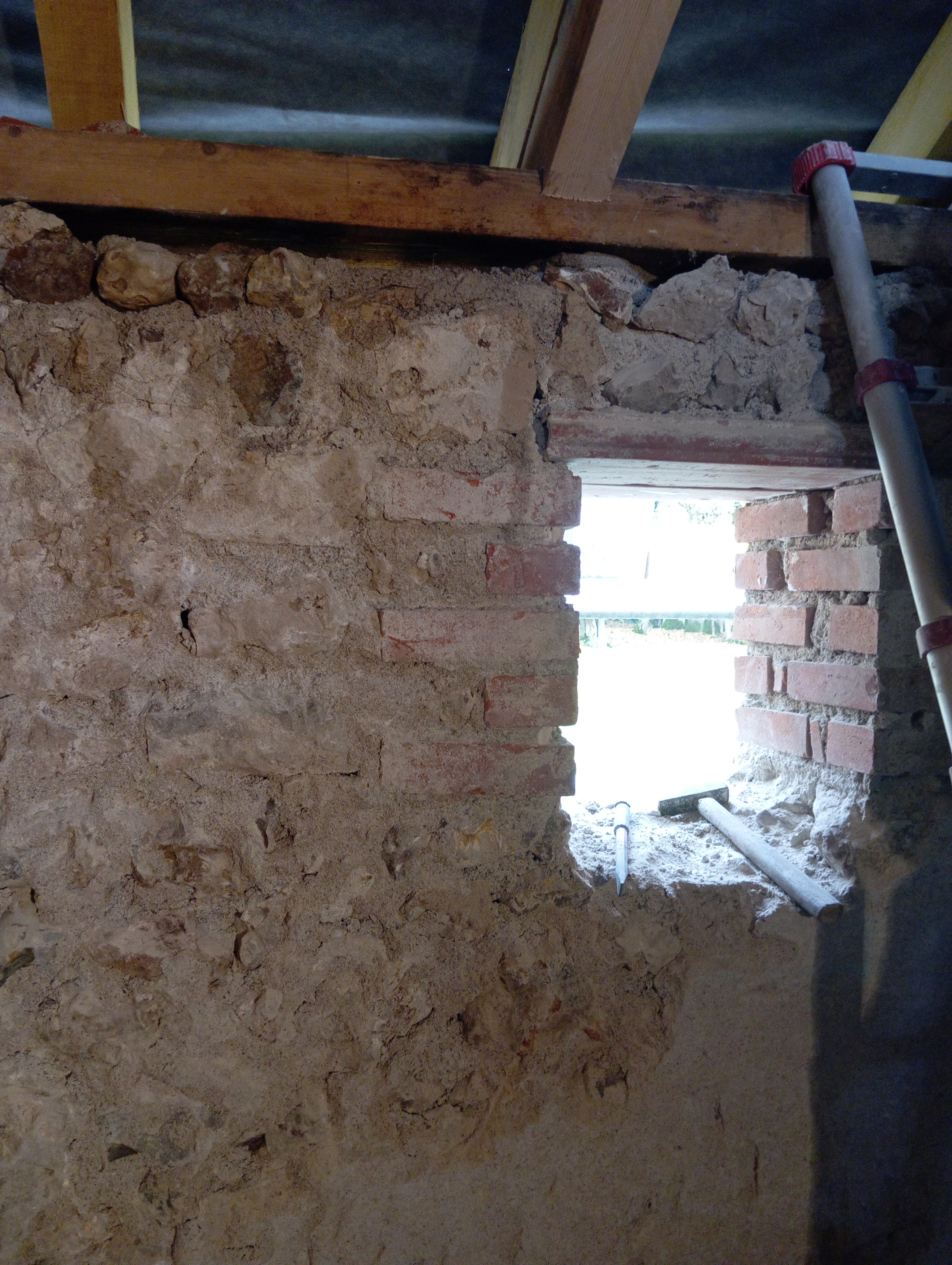 Le chantier est en plein boum ! La charpente en chêne et la couverture en tuiles de pays sont en cours de réalisation. J’ai choisi des matériaux biosourcés pour l’isolation : chaux-chanvre pour les caches moineaux, laine de bois pour les rampants. Formée aux techniques à la chaux et à la terre, adhérente à Maisons Paysannes de France depuis plus de 20 ans, je mets en œuvre ces savoir-faire ancestraux avec conviction.